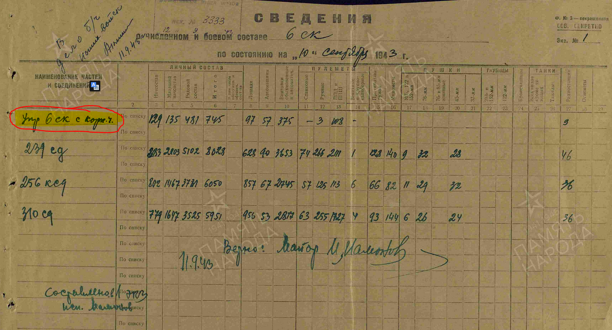 Tegemist siis 6. laskurkorpuse raportiga septembrist 1943.