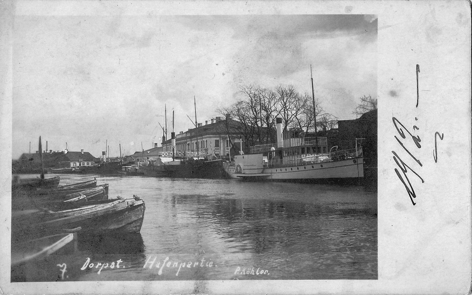 Veel kaks pilti. Mõlemad potsatasid mulle mõnda aega tagasi postkasti. Esimene aastast 1912. Juurdlesin pikka aega, mis kena reisiaurik esiplaanil seisab... aga tuli välja, et hoopis Venemaa teedeministeeriumi teenistuslaev "Jurjev"