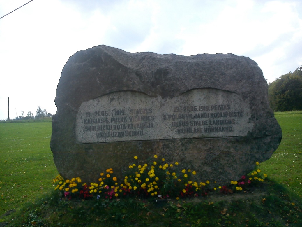 http://pk.rmk.ee/parandkultuur/NU/NU090.jpgVabadussõjas langenud meeste mälestuseks pandud kivi on pinnase all.