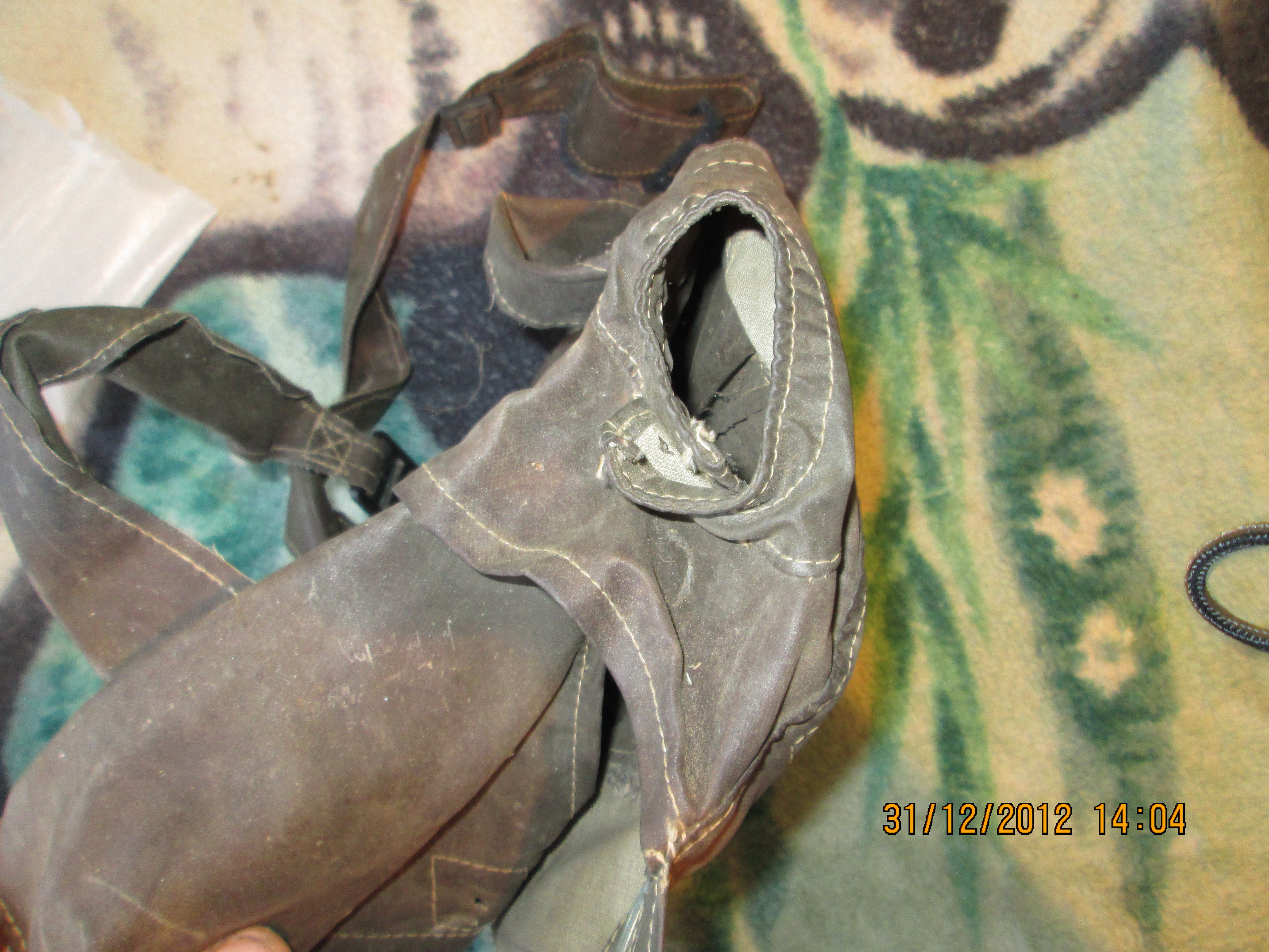 Pildilt ei saa küll hästi mõõtmetest. Sarnasest materjalist on tehtud gaasimaske kotte, kuid klambrid viitaks nagu muule.