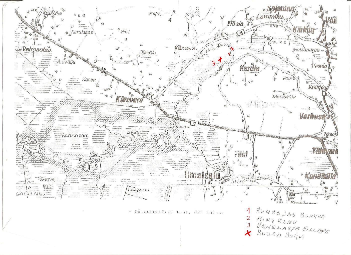 Sai täna käidud venelaste sillapeal. Tuli välja 14 76,2mm hülssi, MG 13 trumlid, mingi vene teraskoletise tugiratas ja muud lahingutele viitavaid pudinaid.Maragratt kirjutas:Tere Shiim.Nüüd üks väike selkitus.Voldemar Ruus ei saanud surma augusti kuus.Ruus sai surma umbes 12/13/9/44.Ja ta keha jäi venelaste sillapeale.Väike juhatus,kui sa lähed Õvikülast Kärevere suunas siis Õviküla lõpus pöörab üks tee vasakule.Tee lõpus on üks väike talu ühe väga vihase koeraga ja mitte sõbraliku perenaisega.Jalgrada viib jõe äärte.Kus vanasti oli minu punkesr oli nüüd suur kraav kaevatud vist paatide jaoks.Ruusa jagu oli minust 5-6 meetert Kärevere suunas,Venelaste silla pea oli umbes 200meetrit meist Kärevere suunas,Siin om suur võimalus,et Ruusa keha maetid ühes venelastega,kes kes langesid samal päeval...Sulle kõige paremat.Maragratt