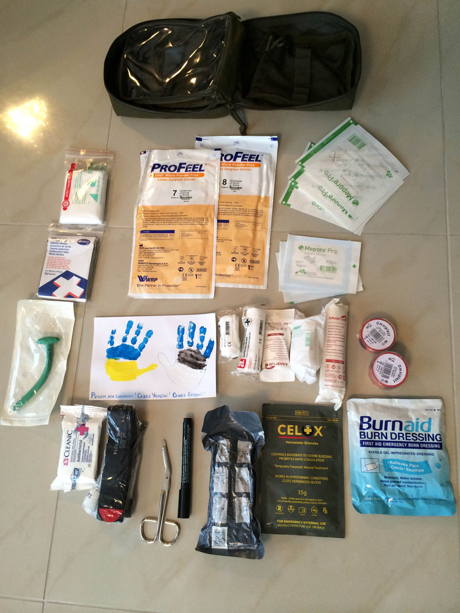 Kuido20 märkus on väga õige, tuleb keskenduda asjadele, mida Ukrainas ei ole või on väga raske/kallis hankida. Söetablette ja aspiriini neil ilmselt on, samuti ei tohiks joodist ja briljantrohelisest puudu olla, mis ka haavade puhastamiseks sobivad ja idablokis tuntud on.