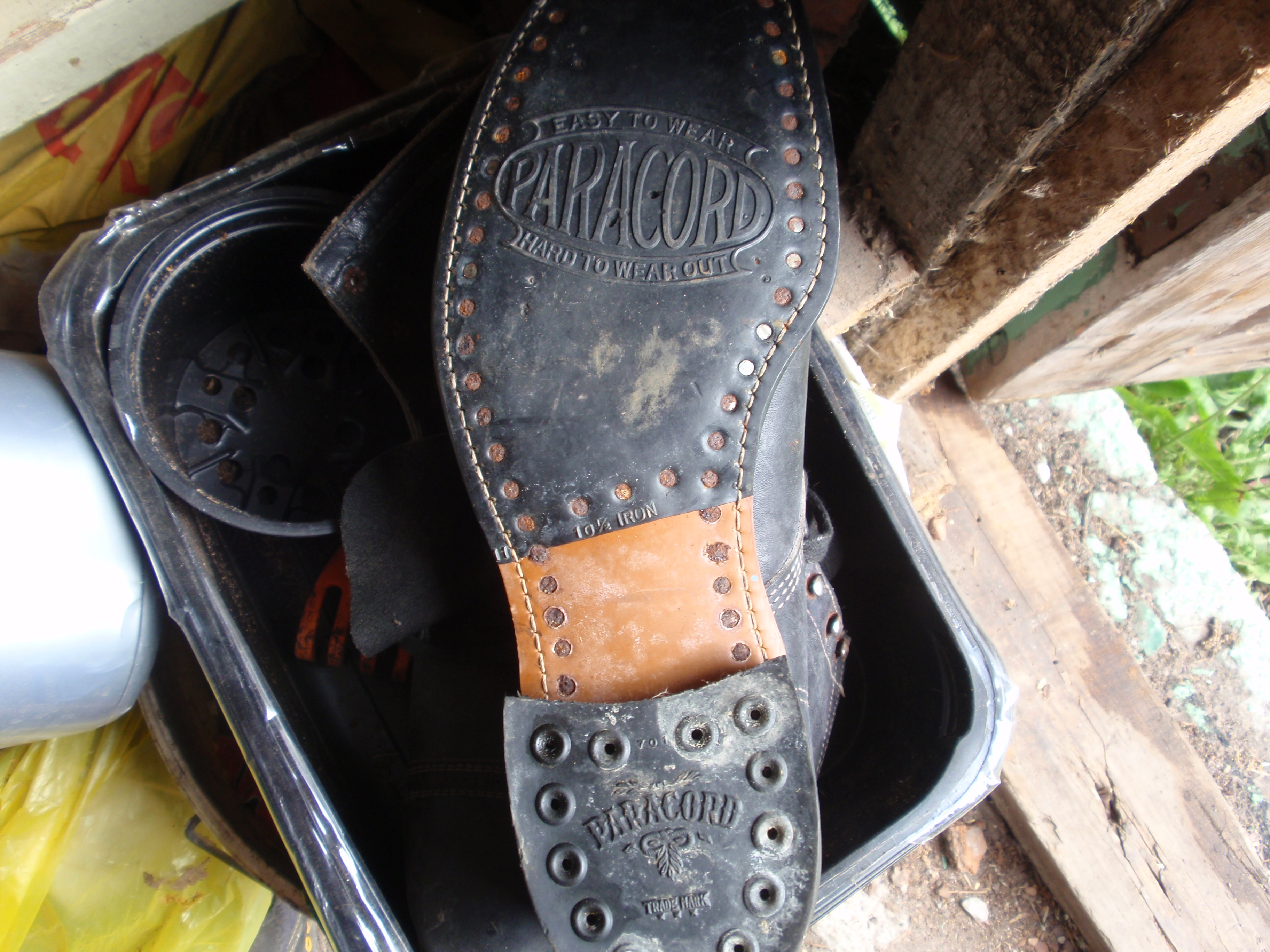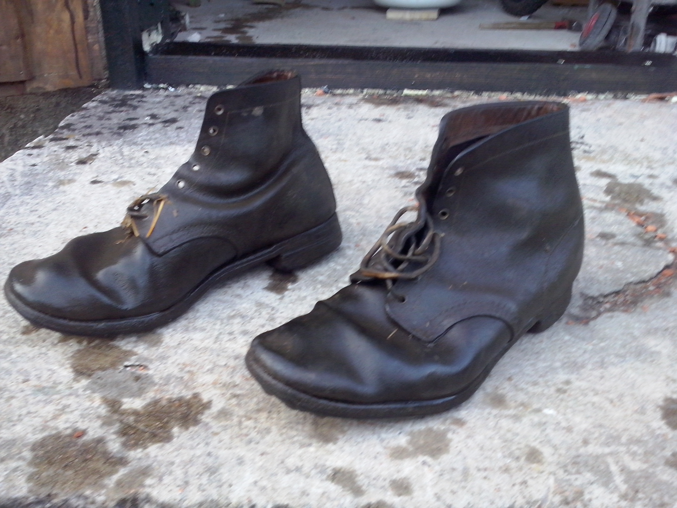 Meenutavad ühtesid sarnaseid naabritalu vanamehe saapaid lapsepõlvest. Aga selline talla naelutamine on kahtlane, et kas pole mõne diletandi käsitöö... Talla serv tundub siiski "õmmeldud" olema. Naelte muster on ka nii ebasümmeetriline, et tekitab kahtlusi. Aga kes teab, me tegime poistega endale ise naelkumme ka jalgrattale, kusjuures täitsa toimisid.