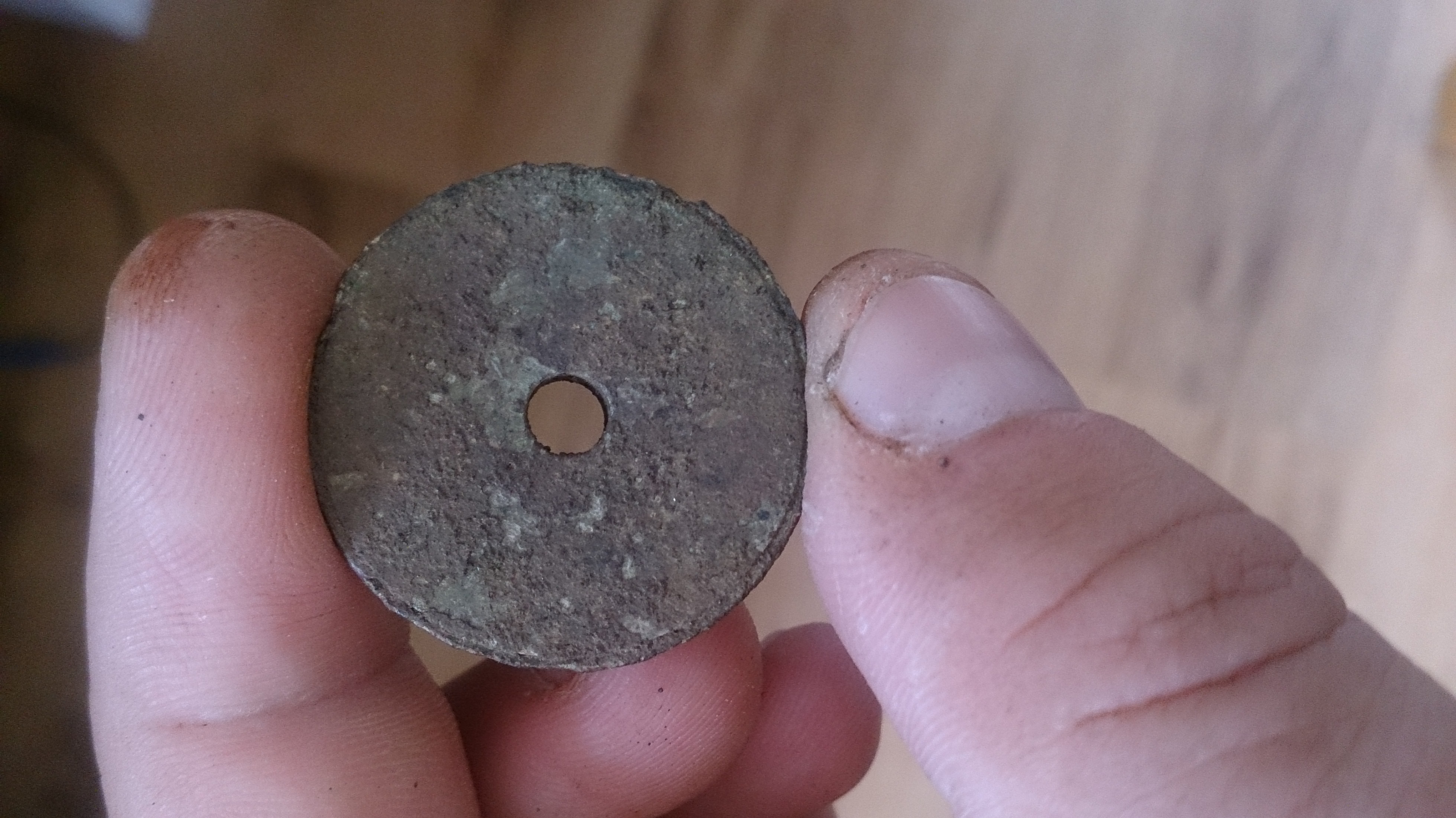 Sõjaga seotud piirkonnast leitud selline detail. Meenutab mingi masina roolikarbi korpust, kuid võib olla hoopis midagi muud.