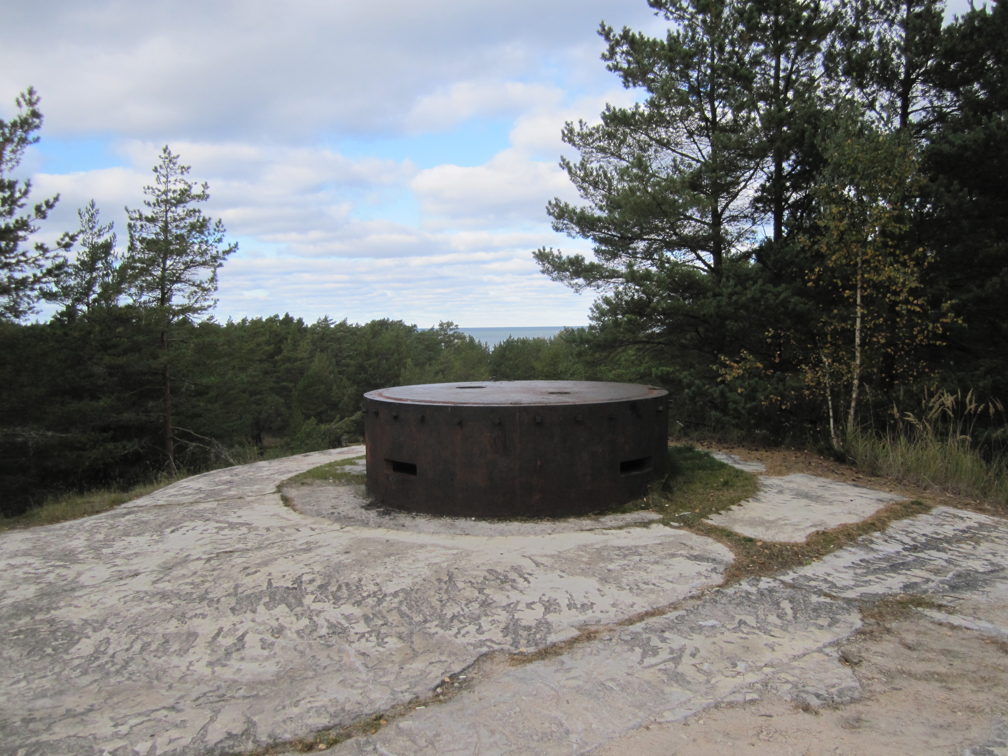 lisan veel pildi,mis tehtud seal lähedal.kui zoomida pilti,siis selle ylemisel detailil on augud mis sobiksid selle detaili aukudega mis esimestel piltidel.tegemist rannakaitse patarei komandokeskusega.Teada on,et lähedal olid 2 180mm suurtykid ja kaugusmöödiku torn.Kas sellel alusel asus väiksema kaliibriga toru,kuid milleks?