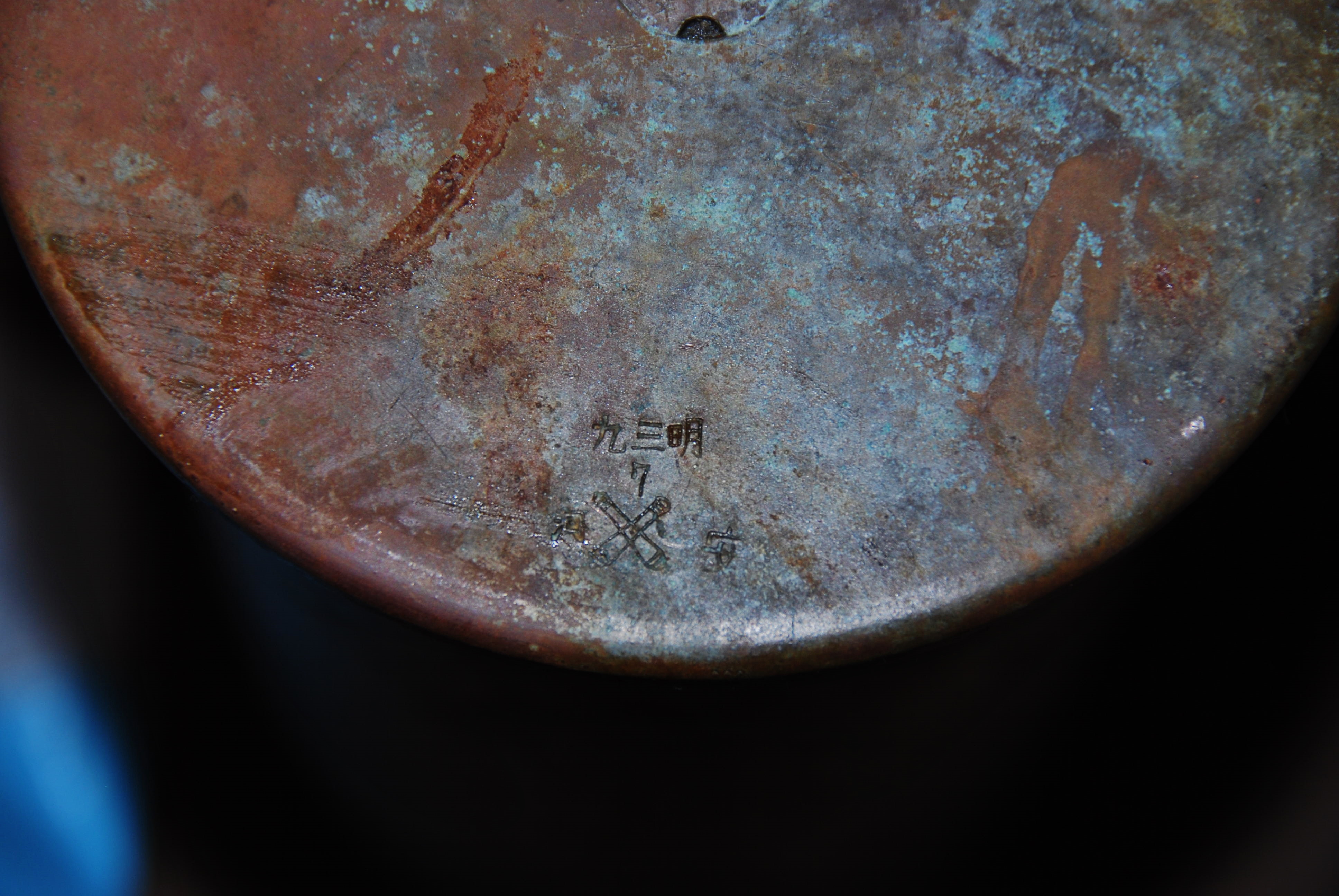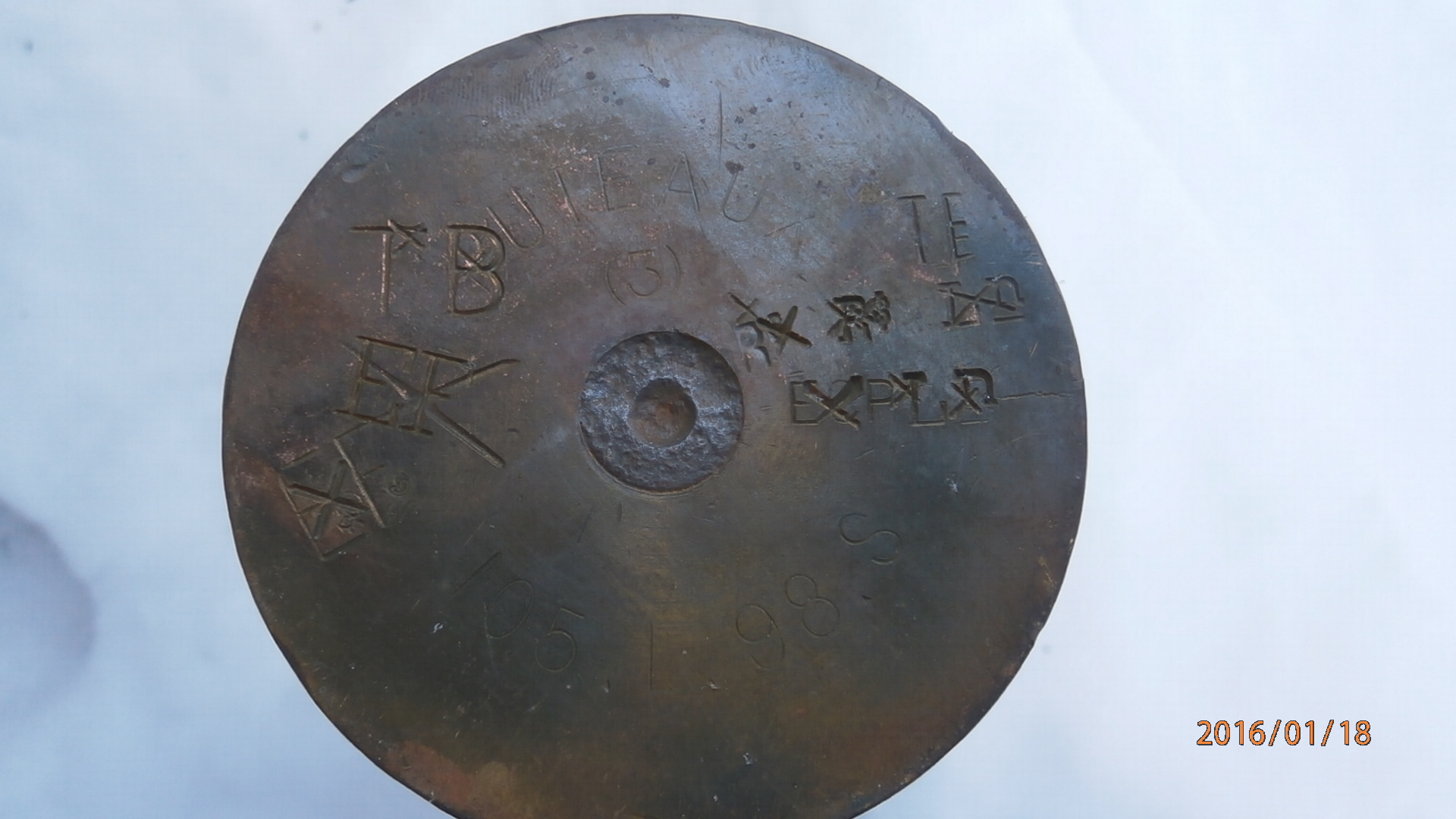 ainukesed märgid mis leidsin on pildil.huvitaks millise puskal seda kasutati ja kelle toodang ja aasta .pikkuseks 30 cm suudmest umbes 10.5 cm ja taguots kuskil 12,5 läbimõõduga