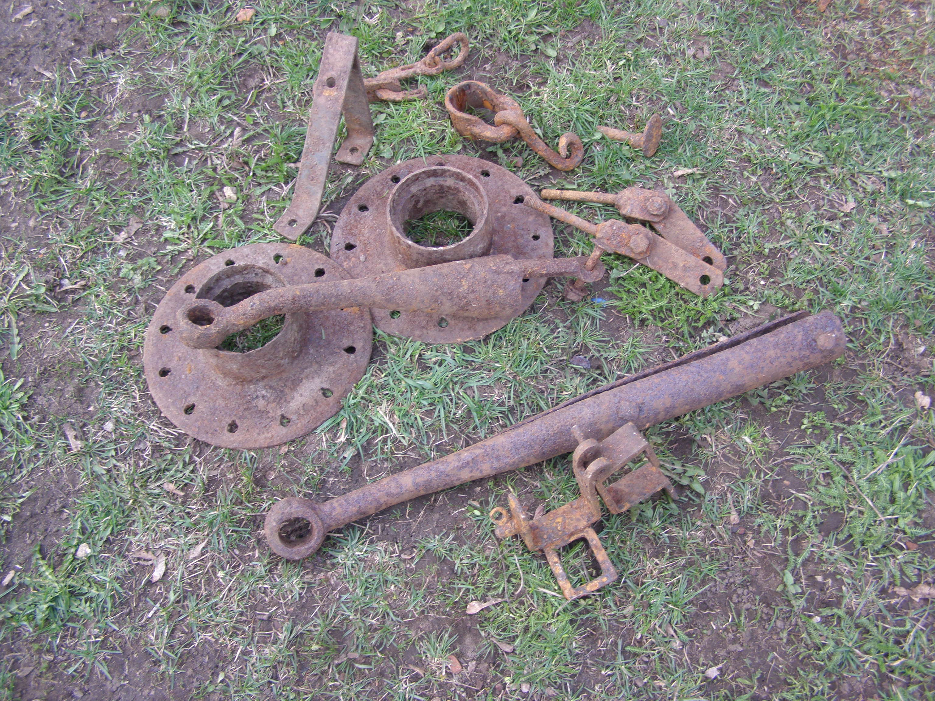Tassisin veel natuke kola võpsikust välja nii igaks juhuks. Vanametalli kokkuostjad on hinda kergitanud ja raud on hakanud metsast hoogsalt kaduma. Selle eeliku või vankri jäänuste juures oli saksa tehnikale mitteomane veotiisli ots. Kui võrrelda 45mm tt eeliku otsaga siis peaks sobima vene haakevärgiga. Äkki oli saksa kaarik sätitud trofee tehnikale sabasse tilpnema. Pikem veotiisli ots on samuti sakslaste paiknemis alalt vankri jupide juurest.