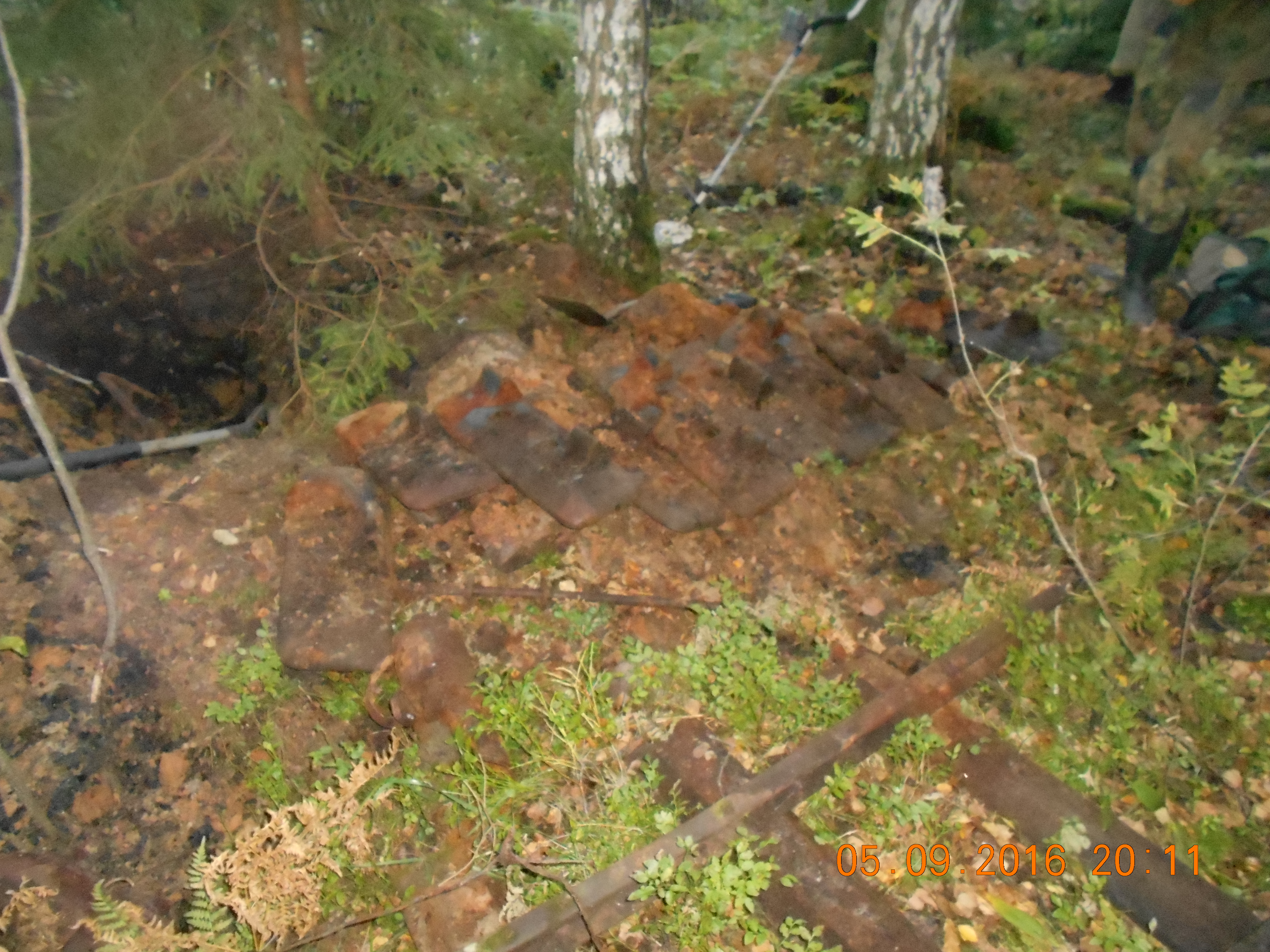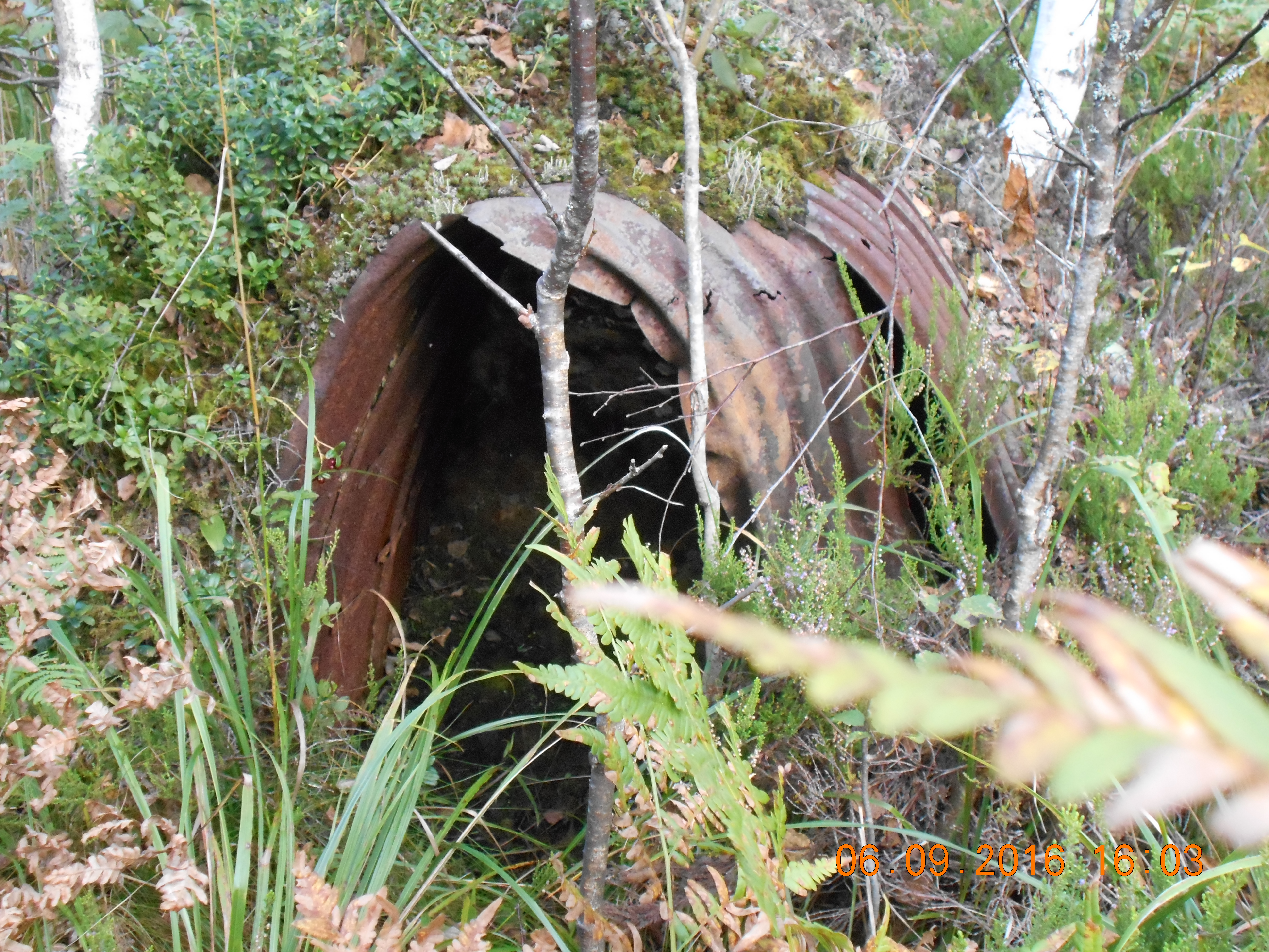 Vasakul pool langil jah. Punker tundus olema ikka sõjaaegne kuigi tagant järgi raske öelda. Keegi oli seal kaevetöid teostanud 2cm flaki roostes hülsse vedeles hulgi. Lage punkril enam ei ole on vaid känd oma juurestikuga nagu tardunud kaheksajalg. Roikad vedelevad sissepääsu kõrval. Punkrist edasi oli 10cm torude positsioonid ja paremale jäid juba suuremad torud.