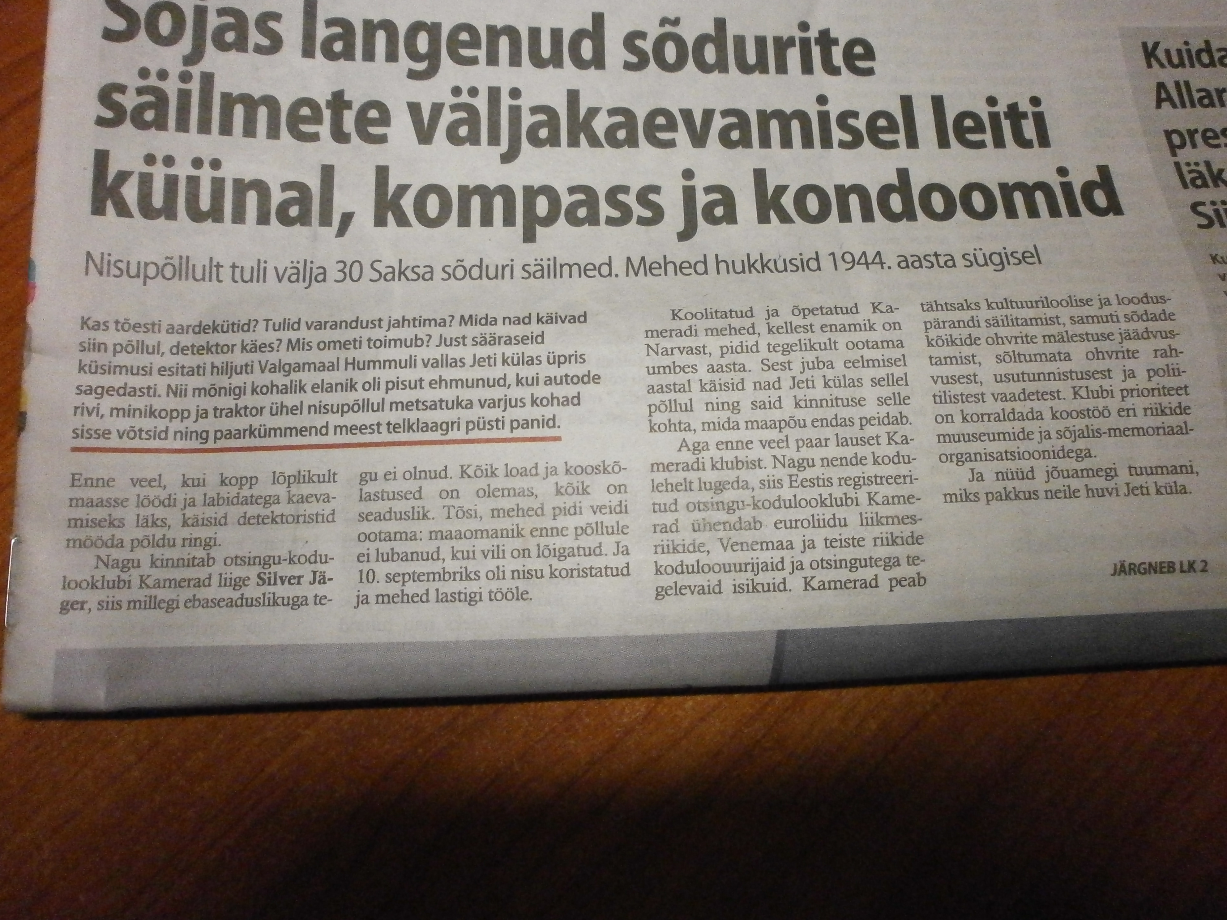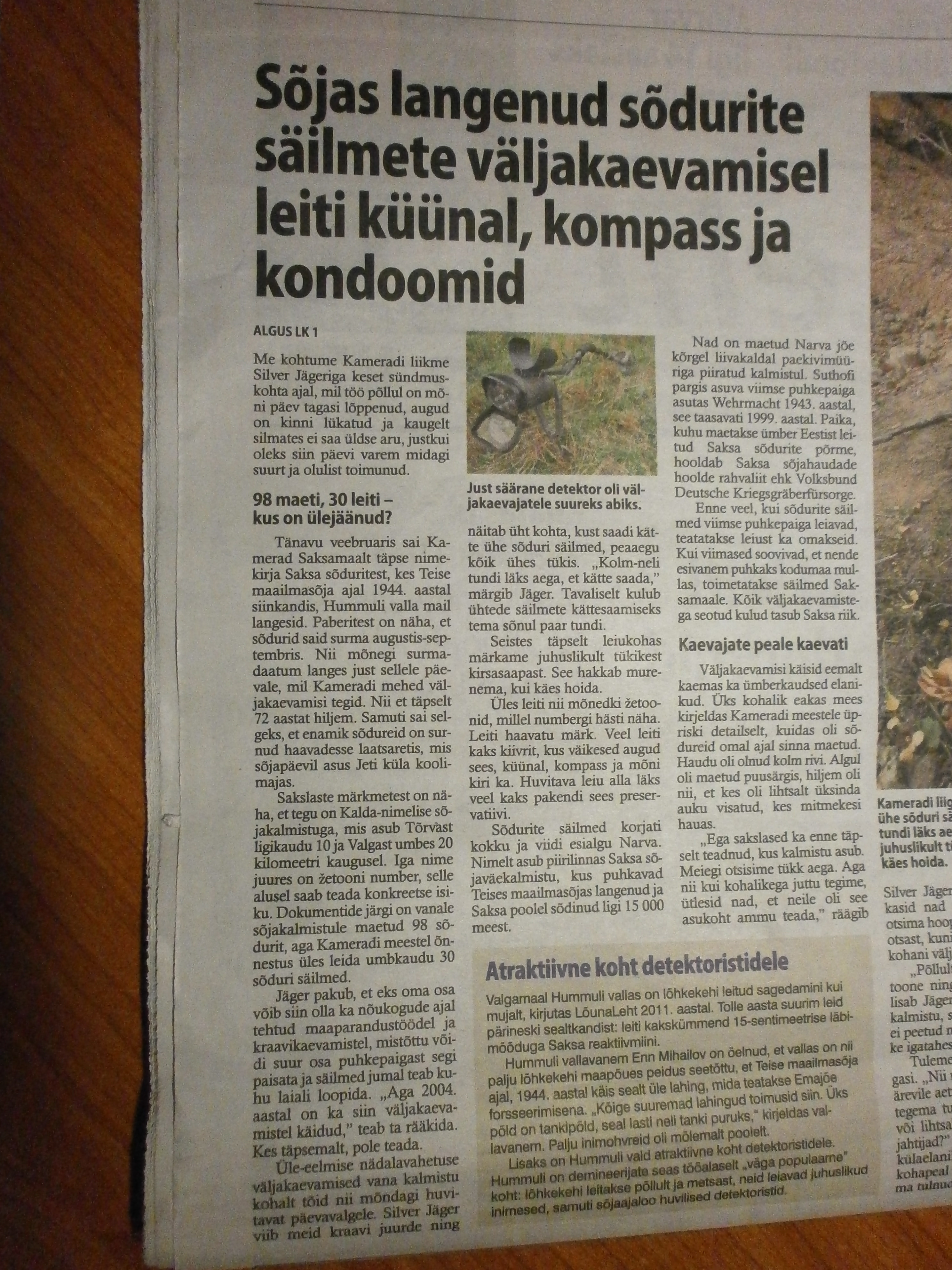 Kas keegi teab midagi hukkunud saksa sõdurite väljakaevamistest, mis toimusid eelmisel nädalavahetusel Valgamaal Koorkülas? Sel nädalavahetusel peaks olema nö jätkuüritus. Info pärineb usaldusväärsest allikast. Miks sellised asjad kunagi kajastust ei leia (ka hiljem)?