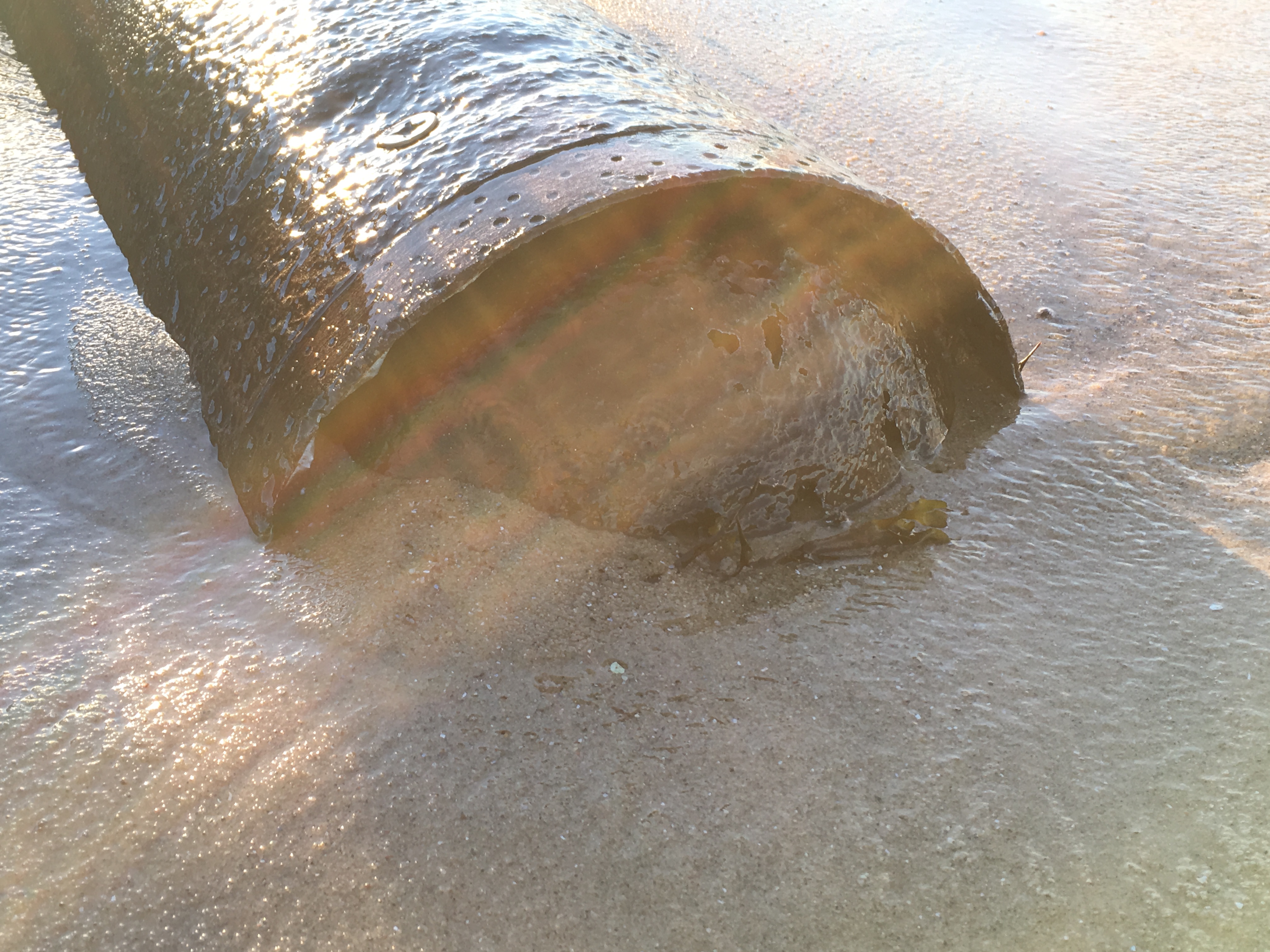 Kas keegi oskab õelda millega on tegu? Näeks välja nagu torpeedo, millel eesmine ja tagumine osa puudu. eesmisel osal on ka külgedel suured kruvid, arvatavasti neid kokku neli, millest kaks oli näha. Kogu pikkus natuke alla 2m.