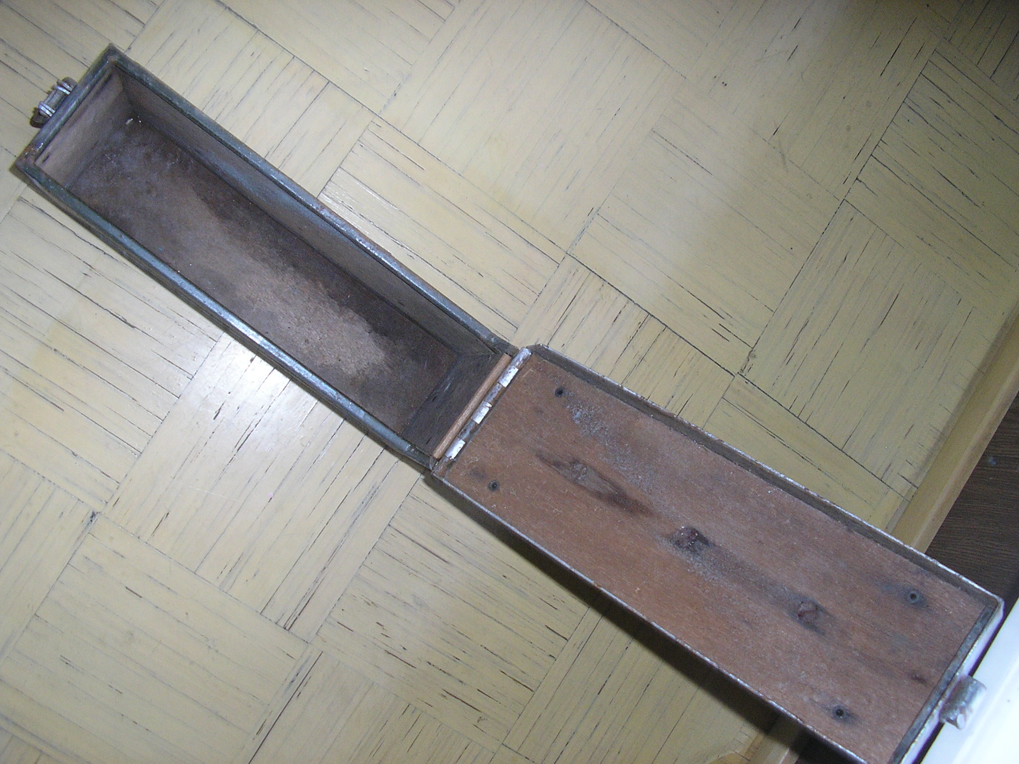 Paluks abi kasti tuvastamisel.Ülevärvitud küll aga seest paistab rohekat värvi,korralikult puiduga vooderdatud.Mõõdud 350x187x105mm.Kasti sisemine mõõt 333x160x90mm.