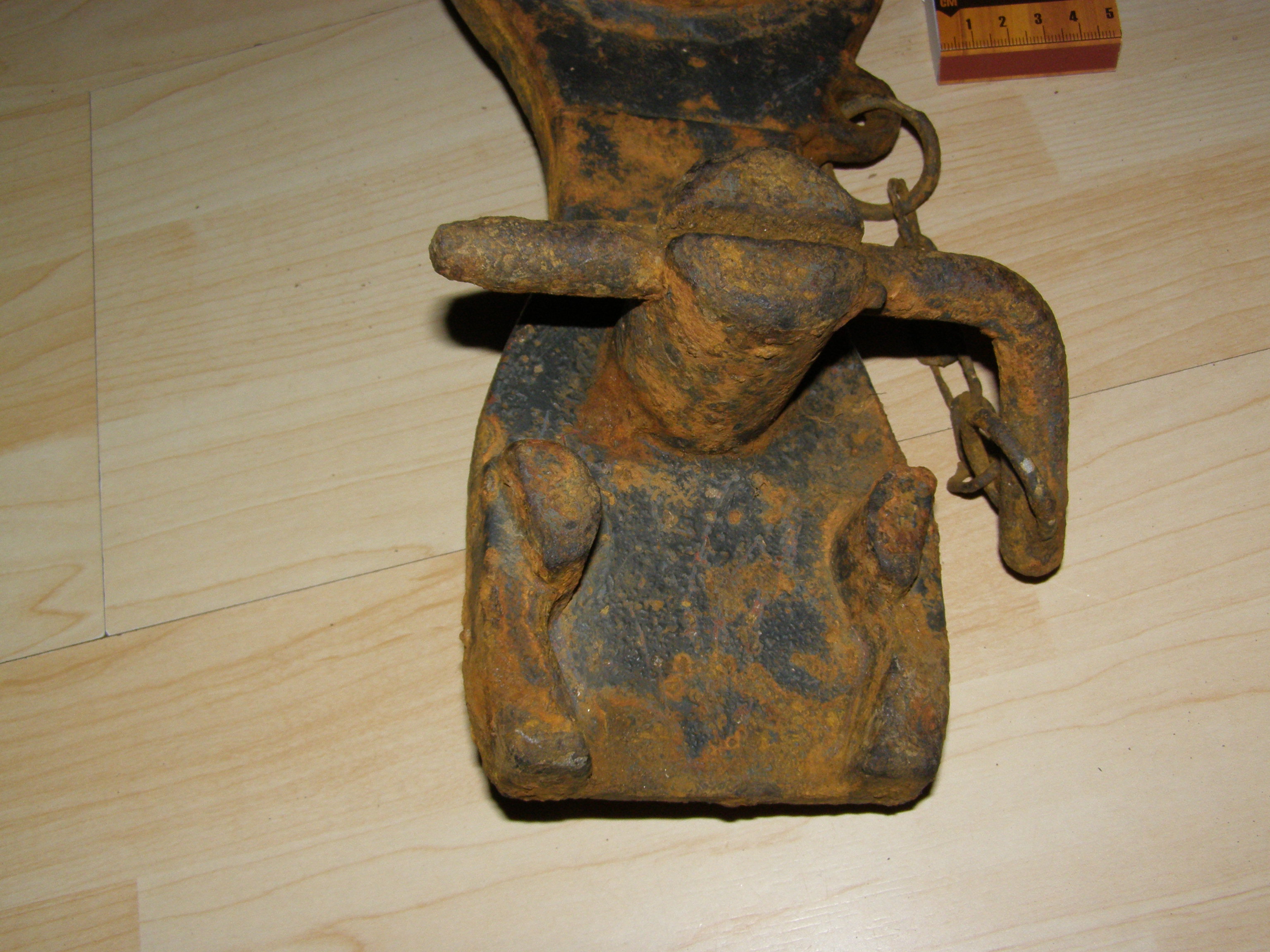 Selline asi tuli välja ühe sodiks lastud poolroomiku kohalt. Masin ise muidugi juba ammu ära veetud aga maha oli jäänud peenemat rauda. Ühes kobaras oli remondi-hooldus kola, tööriistad kasutamata lindilüli, pihutäis lindipolte ja see kolakas. Ise arvan selle haake üleminekuks millegi peenema jaoks, mis muidu tava konksu otsa ei mahu. Aga mille jaoks see täpsemalt mõeldud on ei tea.