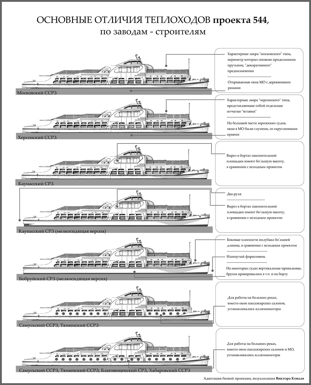 Teatava ülevaate eri tehastes ehitatud pr 544 järgsete laevade väljanägemisest saab järgnevalt pildilt.