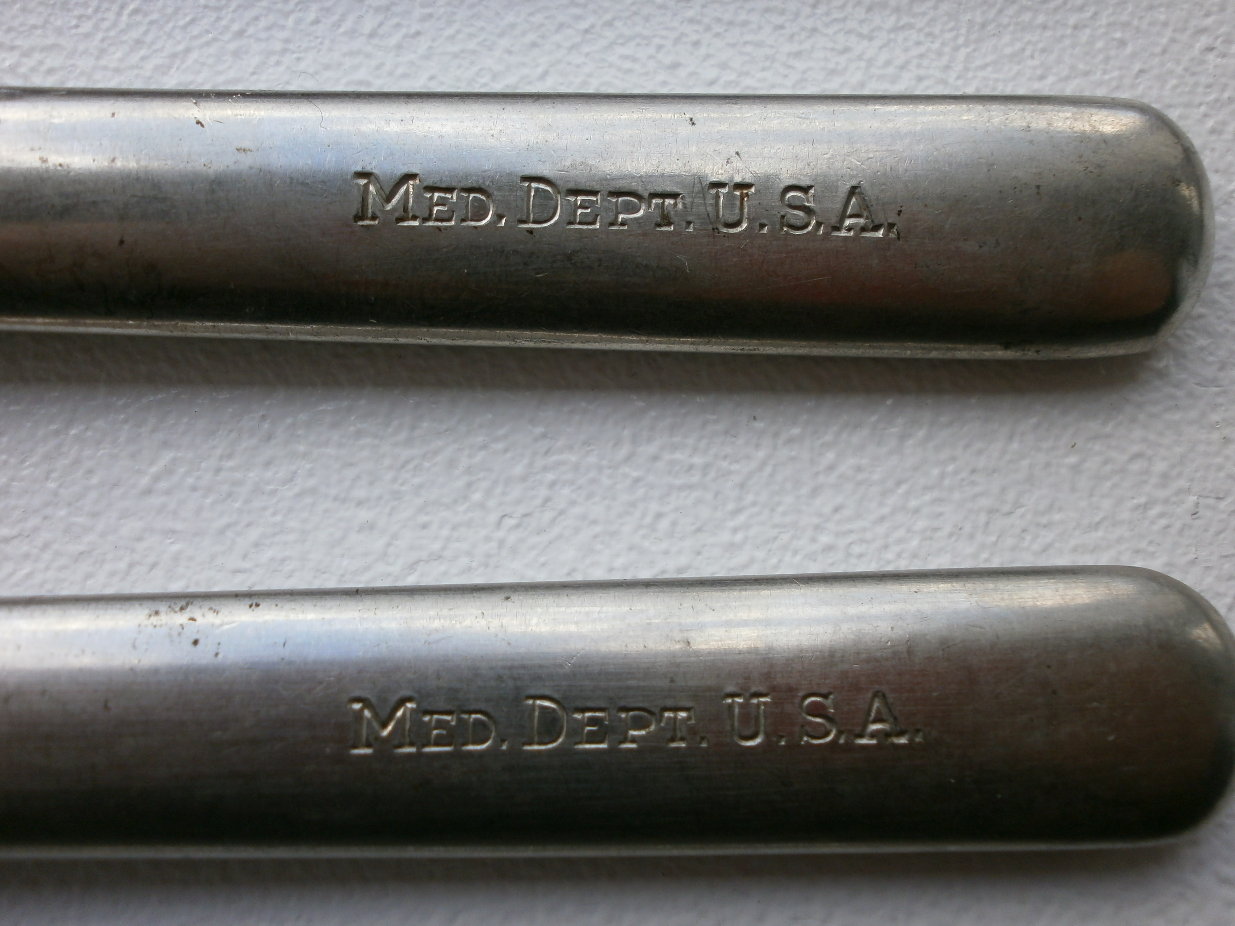 Kui otsida "ww2 usa dinner knife" siis tuleb neid veelgi, mitte sama markeeringuga küll. Aga vast igal osakonnal olid omad markeeringud. Sinu oma peaks olema medical department ehk meditsiini teema.