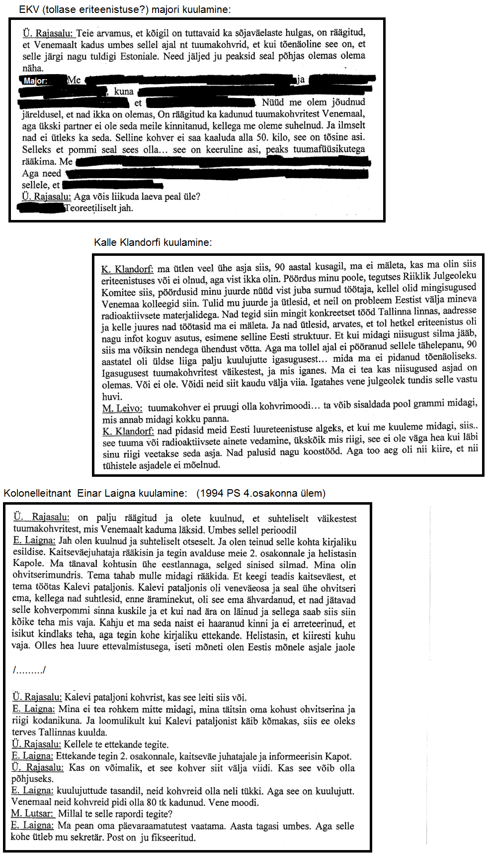 Mis neid nn "Tuumakohvreid" puudutab, siis kuulamiste protokollidest: