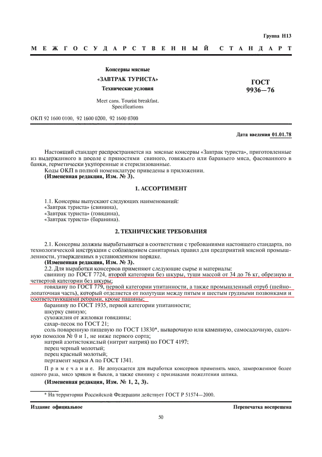 Ma torkan siia kiiruga vahele (aga teie VAKF Svejk ärge laske ennast sellest häirida), et Teie ülal postitatud väljavõte "Turistieine" GOST kohta on natukene puudulik.