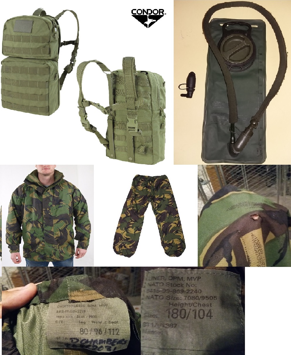 M: Condor seljakott, Briti Gore, käekell, säärised jne
