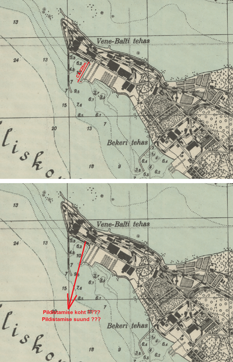 1946a topol on muidu selle teoreetilise 250m pikkuse kai taga juba mingid hooned või pikad barakid mis peaksid olema paista nende olemasolul ka sellel veoka pildil, aga 1926 ja 1936 a topodel ei ole seal selliseid barakke/hooneid ja need võivad olla ehitatud ka peale 1941... ?