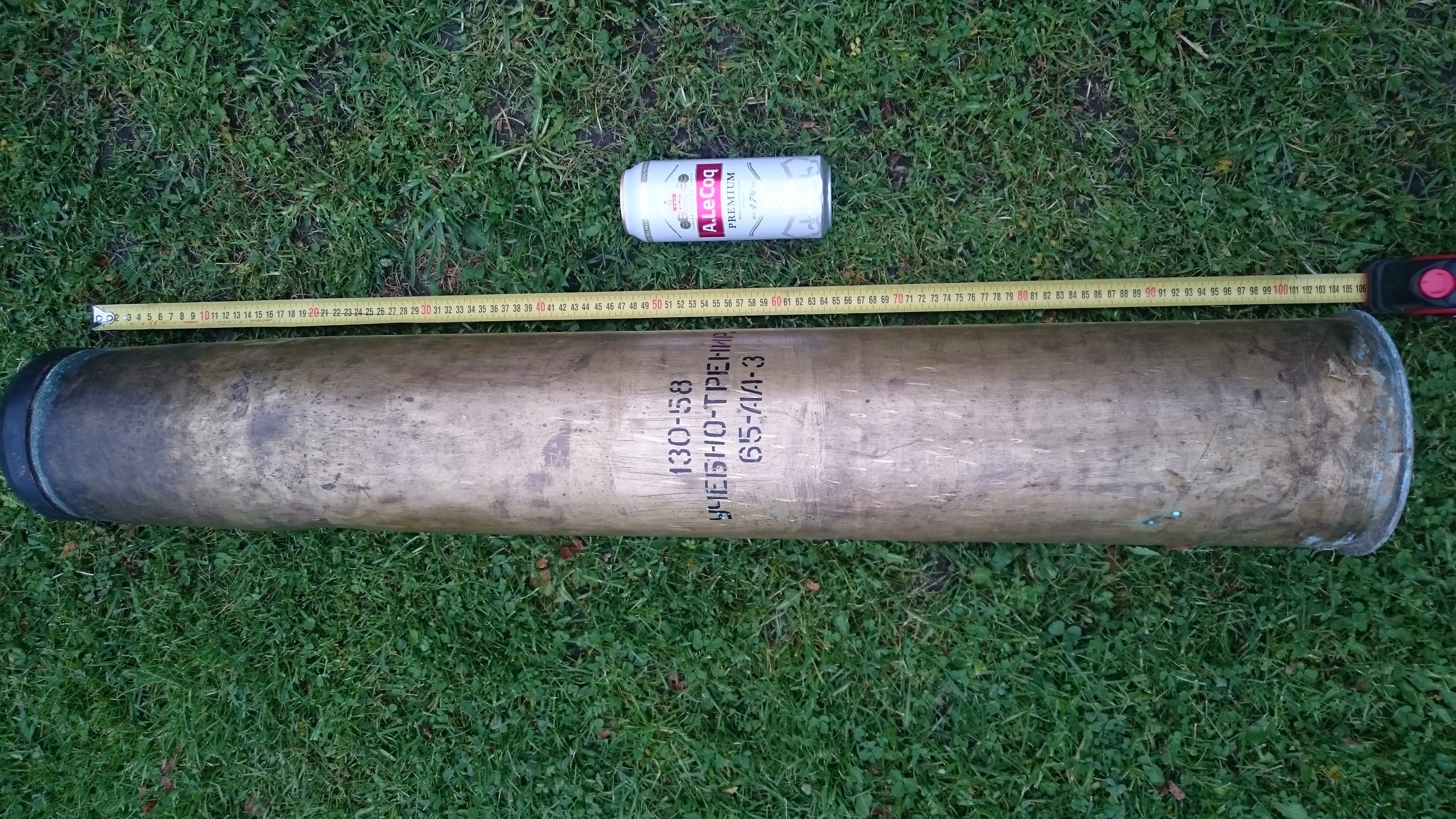Müüa NL õppelaeng, kaliiber, pakun, et 122mm, võib-olla jämedam, hülsi pikkus 105cm. Kaalu ca. 30kg (kaalule ei ole pannud). Messing. Otsas kummist kork.
