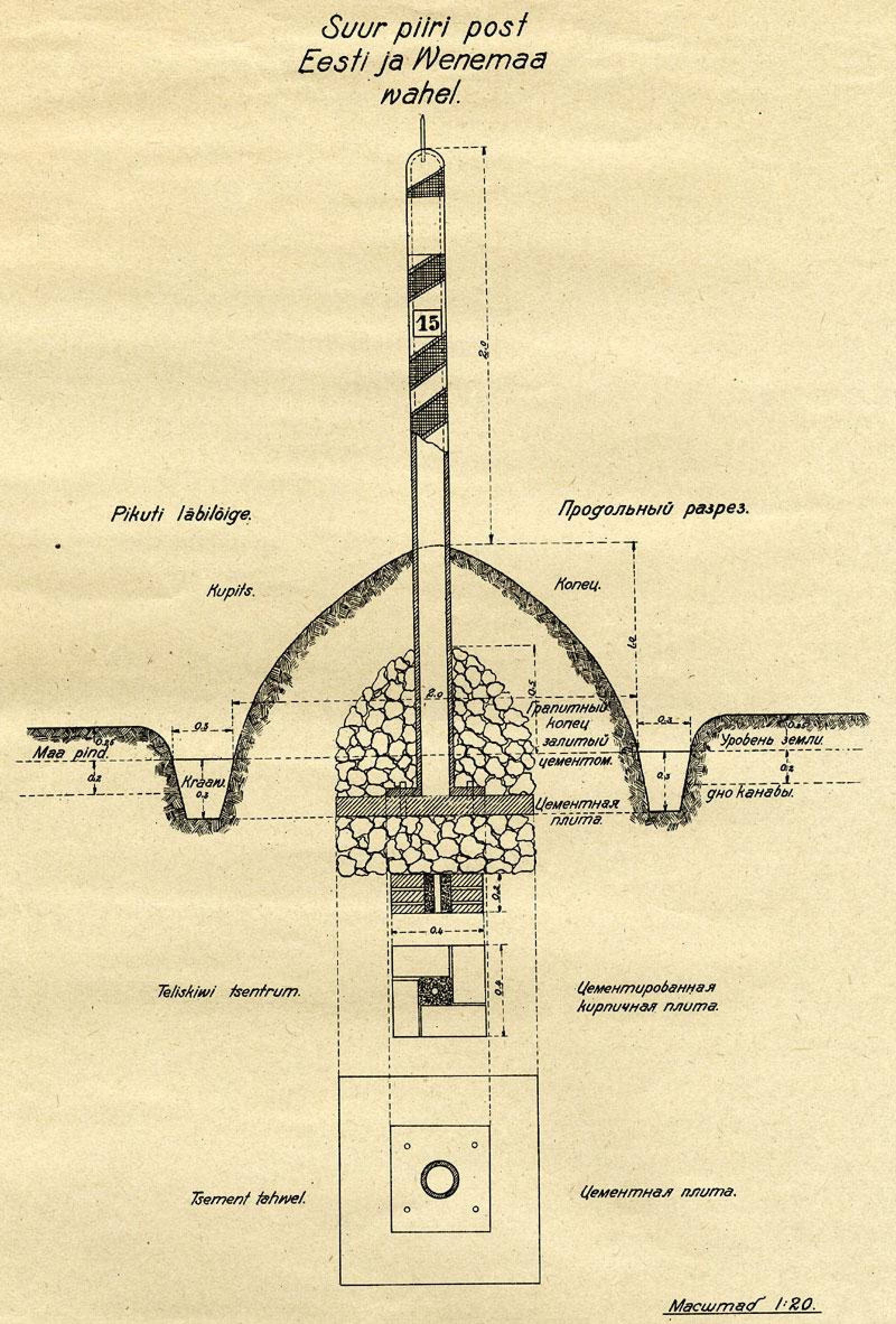 „Kui kindel piir koha peal ajutiste piiri märkidega oli sisestatud, astus sega-piirikomisjon rutulisi samme kindla lõpliku piiri ehituseks. Oktoobris 1920 aastal oli piiri täieliselt sisseehitatud, kusjuures on metsa kohtades raiutud 10 süllalised sihid ja lagedail kohtil kaevatud kahekordsed kraavid: on pandud 74 suurt raud piiriposti, 54 väikest tsement ja 68 väikest puust piiriposti. Kahekordset traat aeda on ehitatud 108 versta. Iga piiri käänu punktile on ehitatud triangulatsiooni signaal 8-18 sülla kõrgused.
