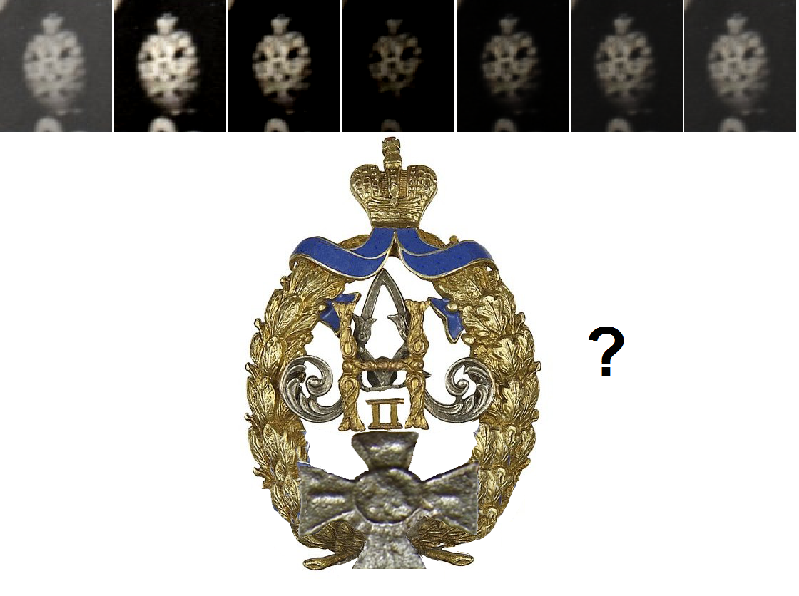 Mulle näib medalil Nikolai nägu ja Stanislavi värvides lint,medal võib olla Za Userdie.Ülejäänus nõus Borjaga,veel võib olla jõe-või järvelaevnik.