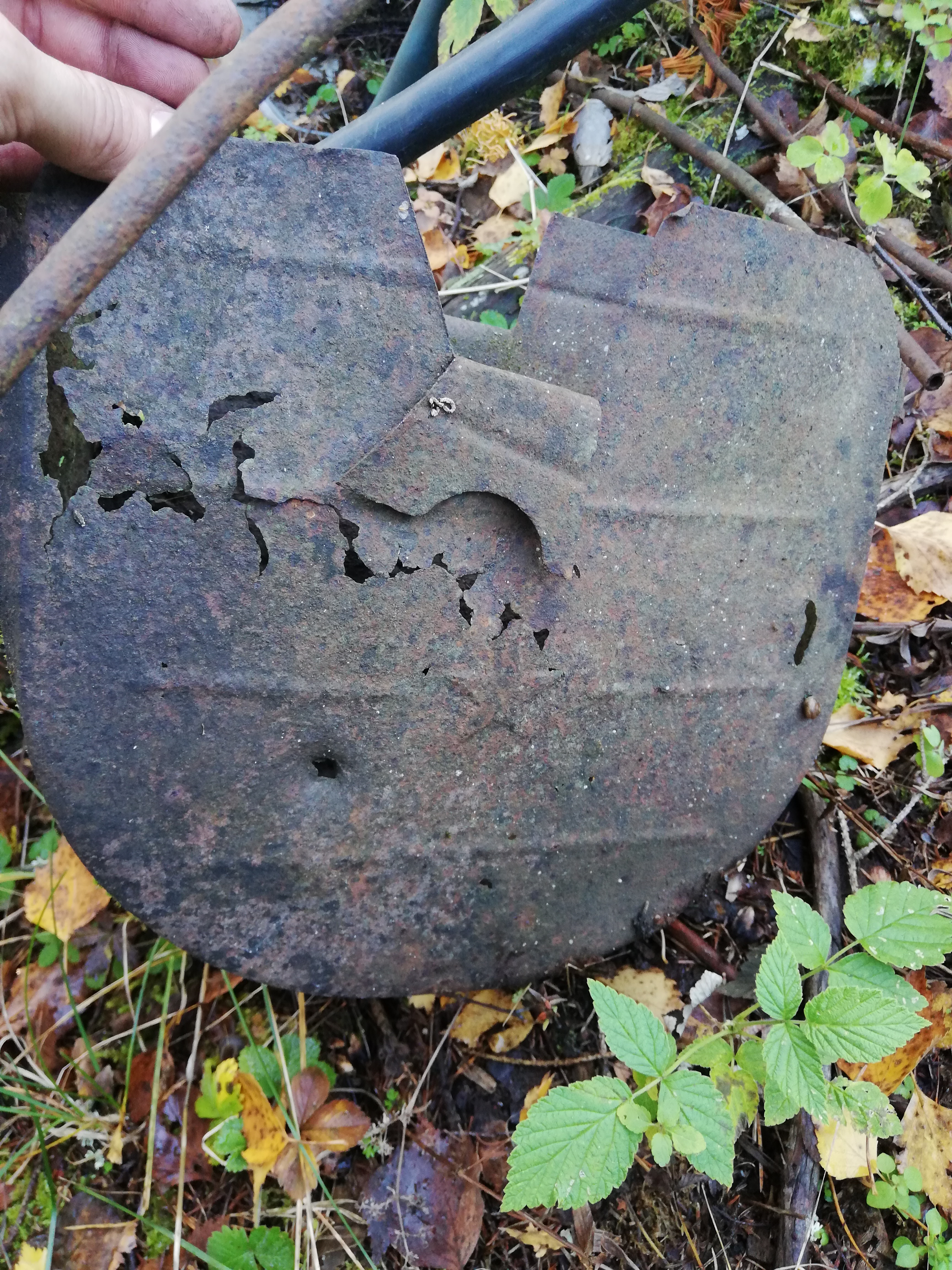 Sügisese jalutuskäigu tulemusena jäi silma üks maa seest välja turritav alumiinium kärakas, tõenäoliselt mingi lennuki jubin, mõned üksikud tähed ja numbrid on peal, tähtede järgi venelane. Mingi birka on ka kunagi olnud aga osavad näpud selle sealt eemaldanud. Leitud Märjamaa kandist ja territooriumi omaniku järgi tassisid nad väiksena need jupid Naistevalla põllu pealt kuhu midagi oli alla kukkunud sõja ajal. Omanikud teadsid veel rääkida, et mingi luuk ja kuulipildur olid ka samast kohast, viimast olen isegi näinud, kuid vanaraua kokkuostjad on tolle minema vedanud. Toru oli otsast lõhki ja üks paras pirakas roostekäkk oli.