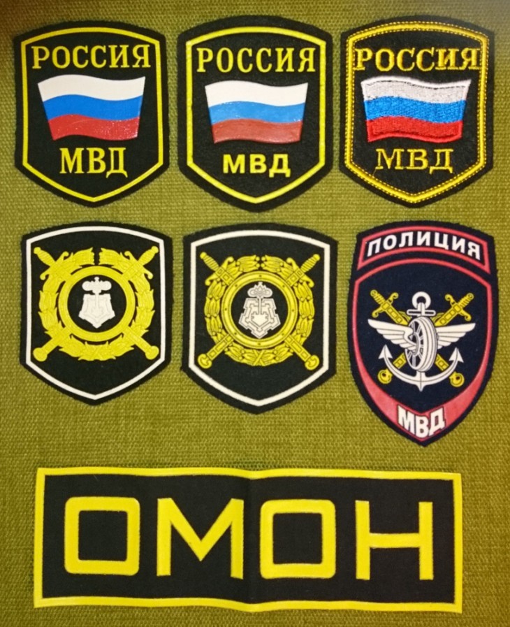 Natuke värskendust teemasse mõningate uute tulijatega kogusse. Üleval Vene siseministeeriumi (miilitsa) üldembleemide erinevad variandid, all kaks eri varianti miilitsa valveteenistusest ("riikliku turvafirma") ja praegune transpordipolitsei. All üks vana OMON kuskil 90.a kandist.