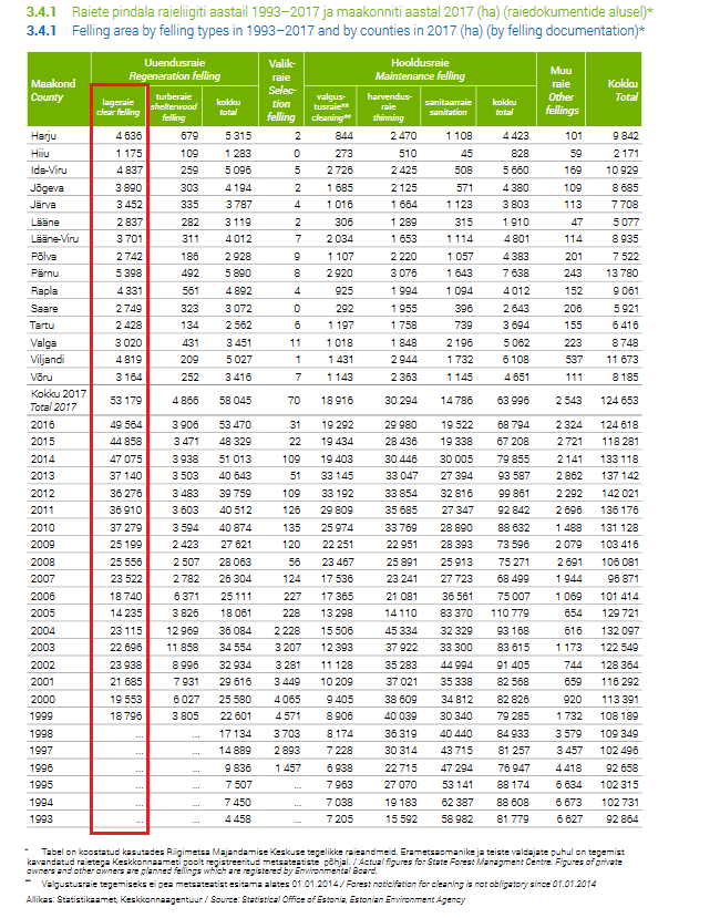 Ja veelkord. Minu arust käibki erinevate osapoolte vaidlus selle üle, kas meil peaks metsa majandama nii, et lageraiete osakaal on väiksem (perspektiivis kahanev) või nii, et lageraiete osakaal oleks suurem (perspektiivis kasvav).