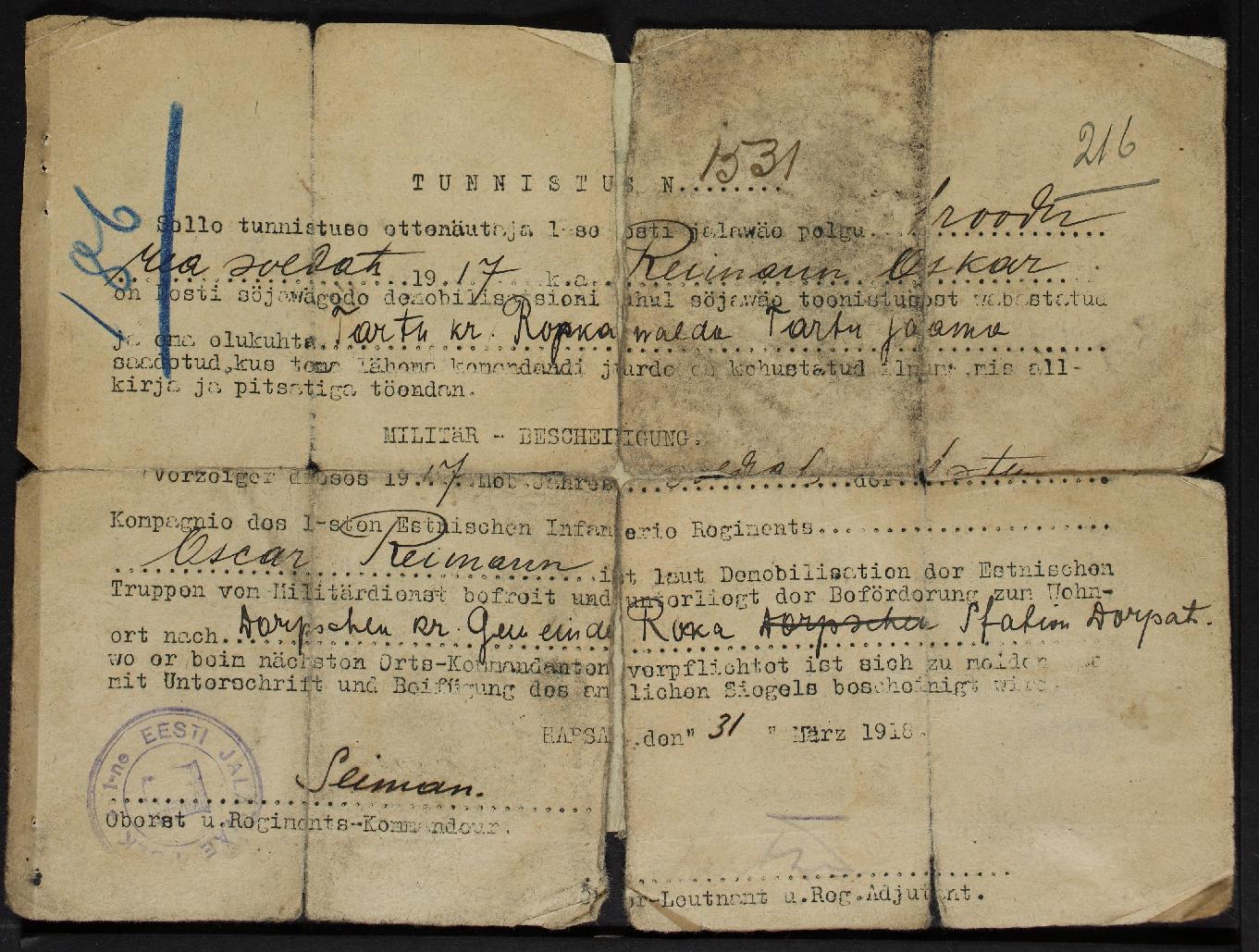 Antud Peakorteris 22. septembril 1918.