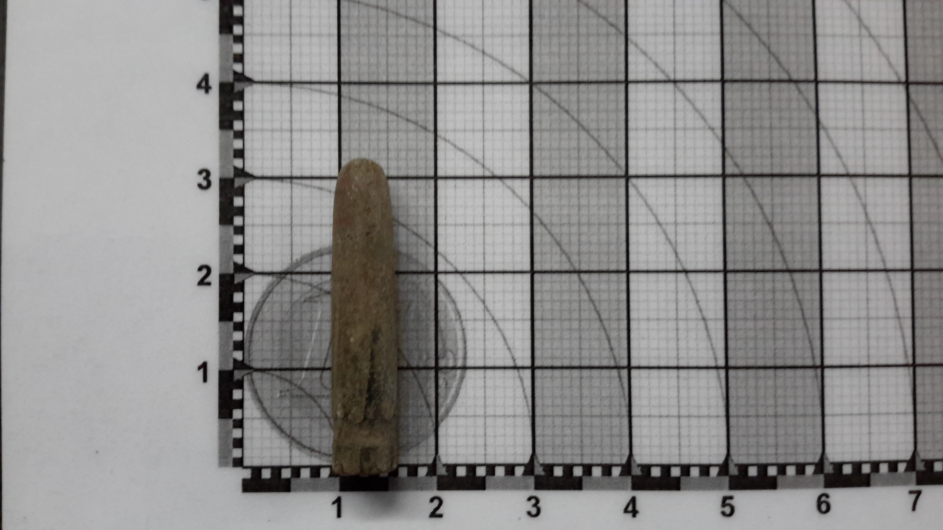 Tere. Leidsime täna, s.o 1. aug Kose kiriku aiast (Harju mk). Läbimõõt 11 mm, pikkus 55 mm. Kirjad põhjal 5,5, CBC, 1,1.