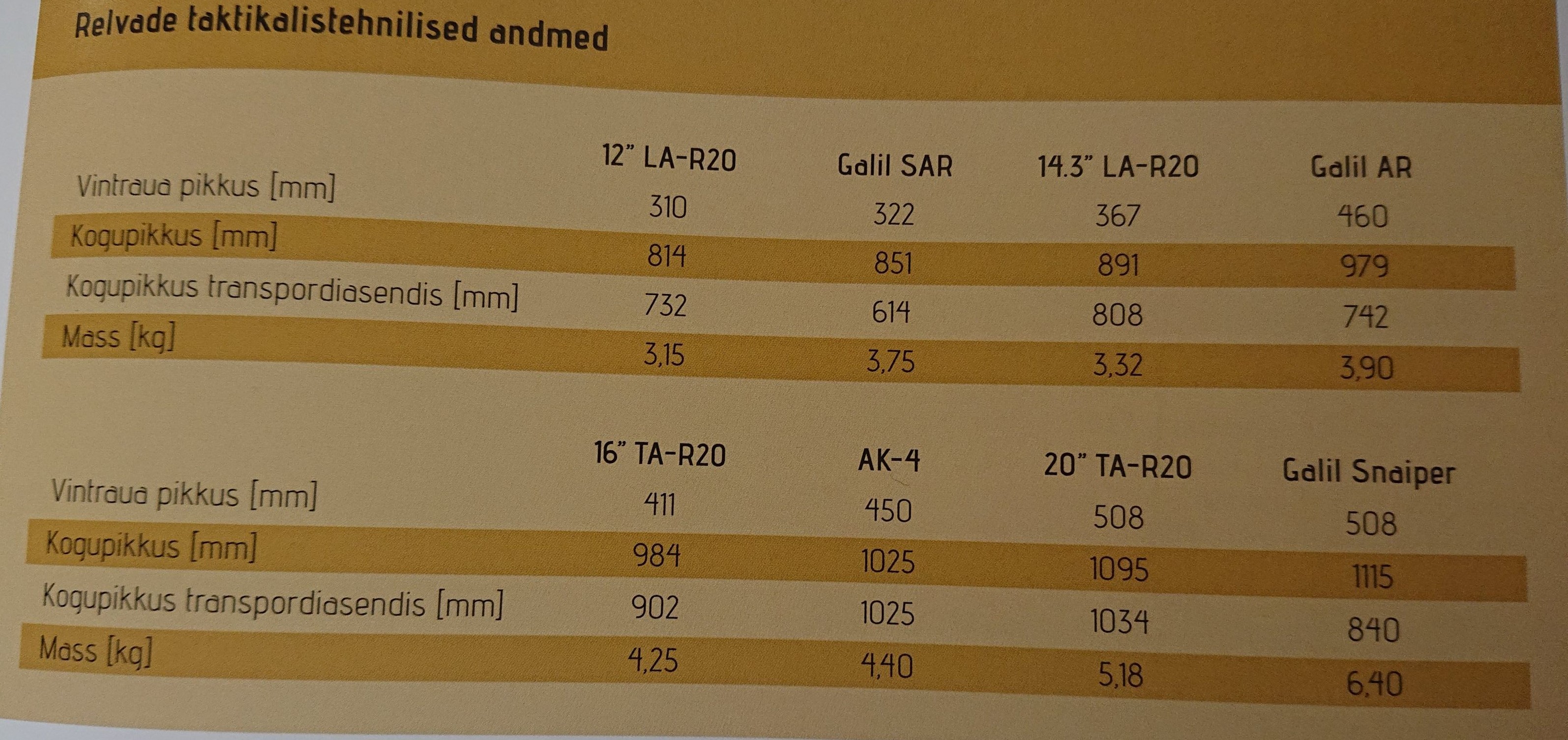 Sai siis ka kätte saadud uus LMT 7,62 kaliibris relv, mida tutvustati ScP poolt Tapal toimunud perepäeval. Igati kerge ja huvitav ning käepärane relv oli. Peal Trijiconi VCOG 1-6x optika https://www.trijicon.com/na_en/products ... mid=1-6x24 koos harkjalaga. Selline võiks täitsa juba relv olla. Võrreldes AK4-ga ikka tuntav edasiminek nii kaalus, kui ergonoomikas. Laskma kahjuks minna ei saanud :) Eks seda näeb kunagi hiljem. Sama võrdlus oleks Galiliga võrreldes.
