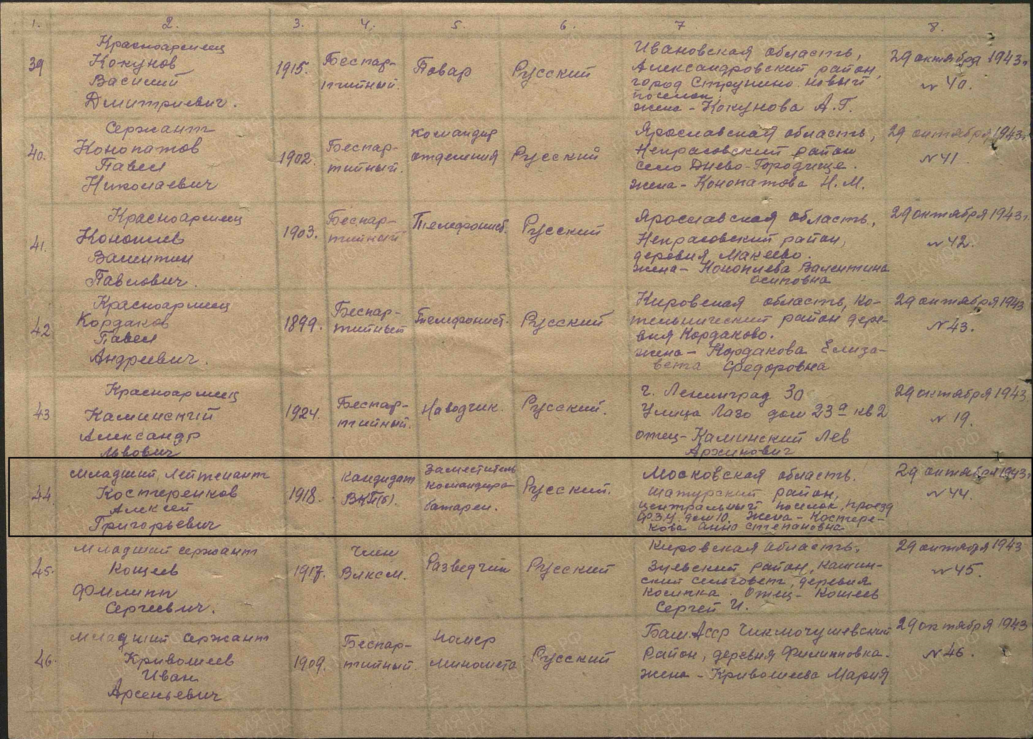Sama mees on saanud 29.10.1943 postuumselt ka medali «За оборону Ленинграда»Sektor gazovoi ataki kirjutas:Sellenimeline nooremleitnant ja rühmaülem langes 20.03.1943 Leningradi oblastis.