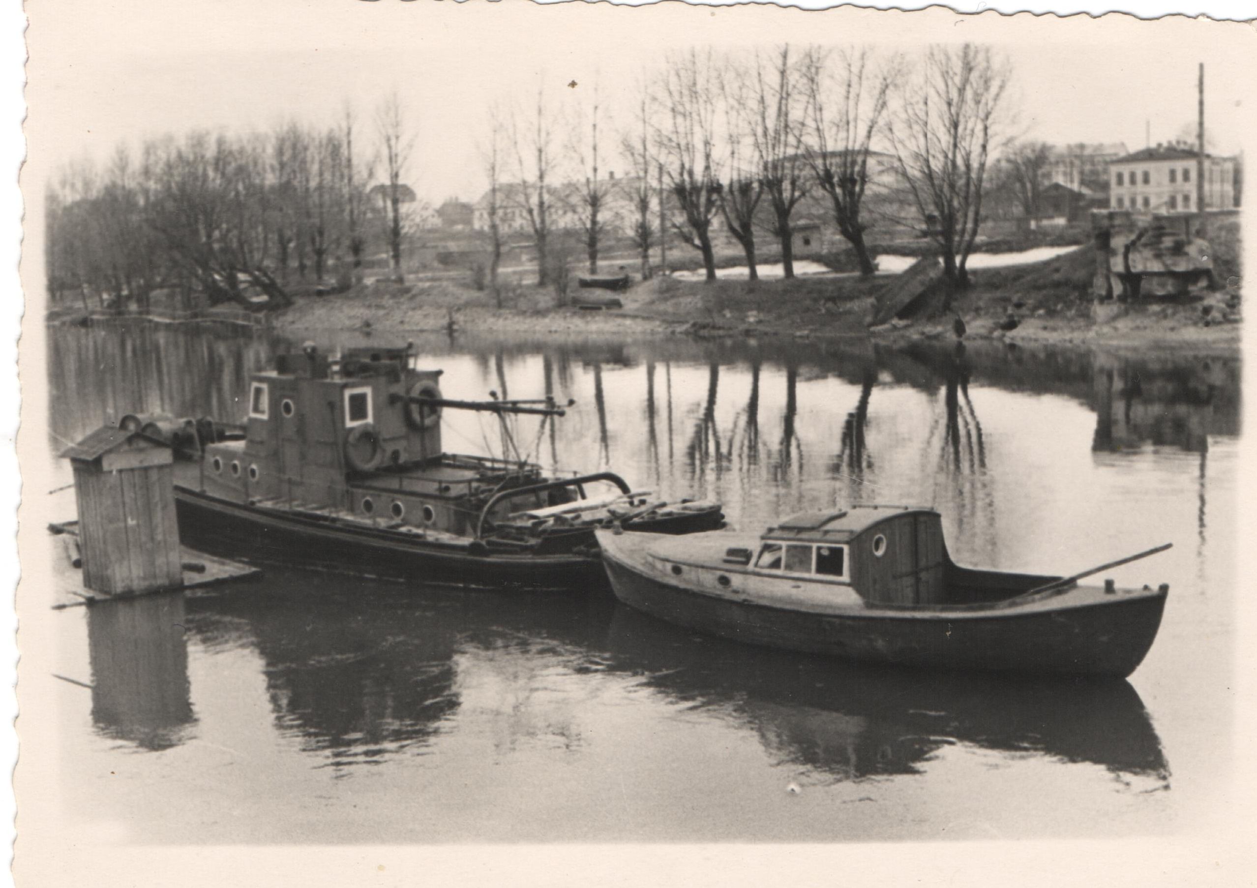 Mul tekkis vahepeal veel üks variant pärast seda, kui vaatasin veel ksf Sauniku poolt postitatud aerofotot. Sellel paistab Pärmivabriku all plats puhas olema. Aga kümnendi lõpus hakati vastaspoolel slipi ehitamist ette valmistama (ehitati seda kuus aastat)ja see pidi tingima mõnesuguse laevade ja vrakkide ümberpaigutuse. Kas ei võiks olla võimalik, et 50-te algul oli seal kaks alust, millalgi saadi ühest lahti aga teine, vähe linnapoolsem jäi paika?