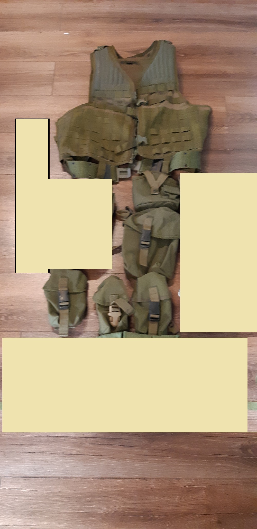 Osad asjad kasutamata (arvan, et osad taskud, nuga, kaarditasku). Vest ise minimaalselt kasutatud ja heas korras. Mõlemal pool sees sisetaskud, seljapeal veekoti jaoks tasku. Peale joogipudelitasku kõik ülejäänud molle kinnitusega.