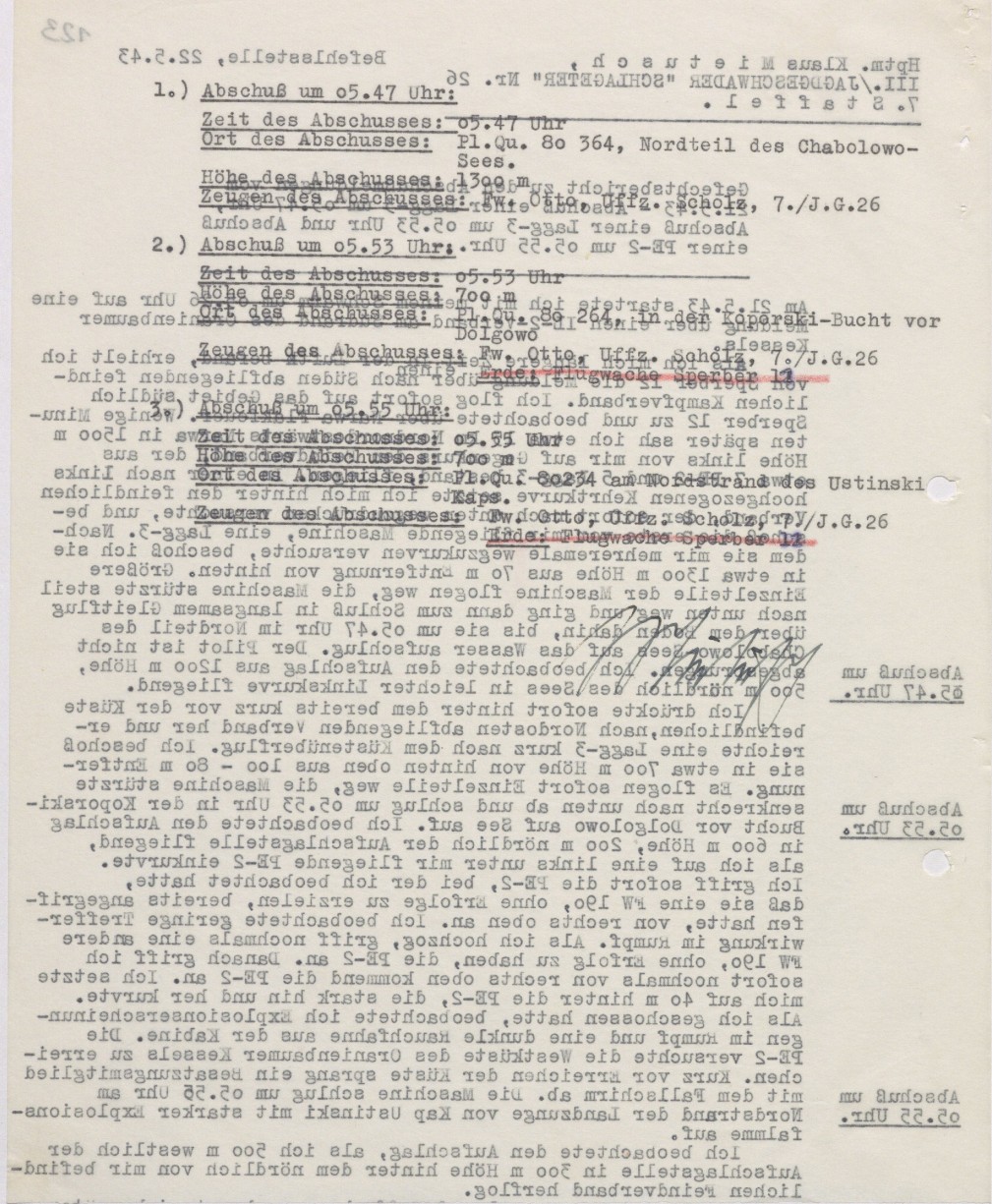 Sellelsamal hommikul lendas rühm saksa hävitajaid 7./JG 26 koosseisust Siivertsi lennuväljalt Kotlõ-sse (lennuaeg 02,45 – 03,06) ja paar tundi peale seda järgnes alarmstart (lend kestis 05,25 – 06,07). Sakslased pretendeerisid kahe Pe-2 ja kolme LaGG-3 allatulistamisele ajavahemikus 05:46 kuni 05:55.