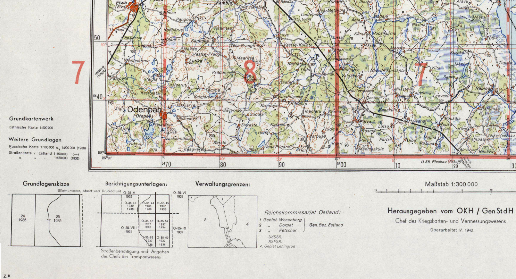 Selle kaardi sisu pärineb:Dr.Sci kirjutas: Aga jah, 1943 a kaardil (Heereskarte mõõtkavas 1:300 000), saadaval meie geoportaalis on nagu sild ära täheldatud) Varasematel ja hilisematel mulle hetkel kättseaadavatel avalikel ei leia