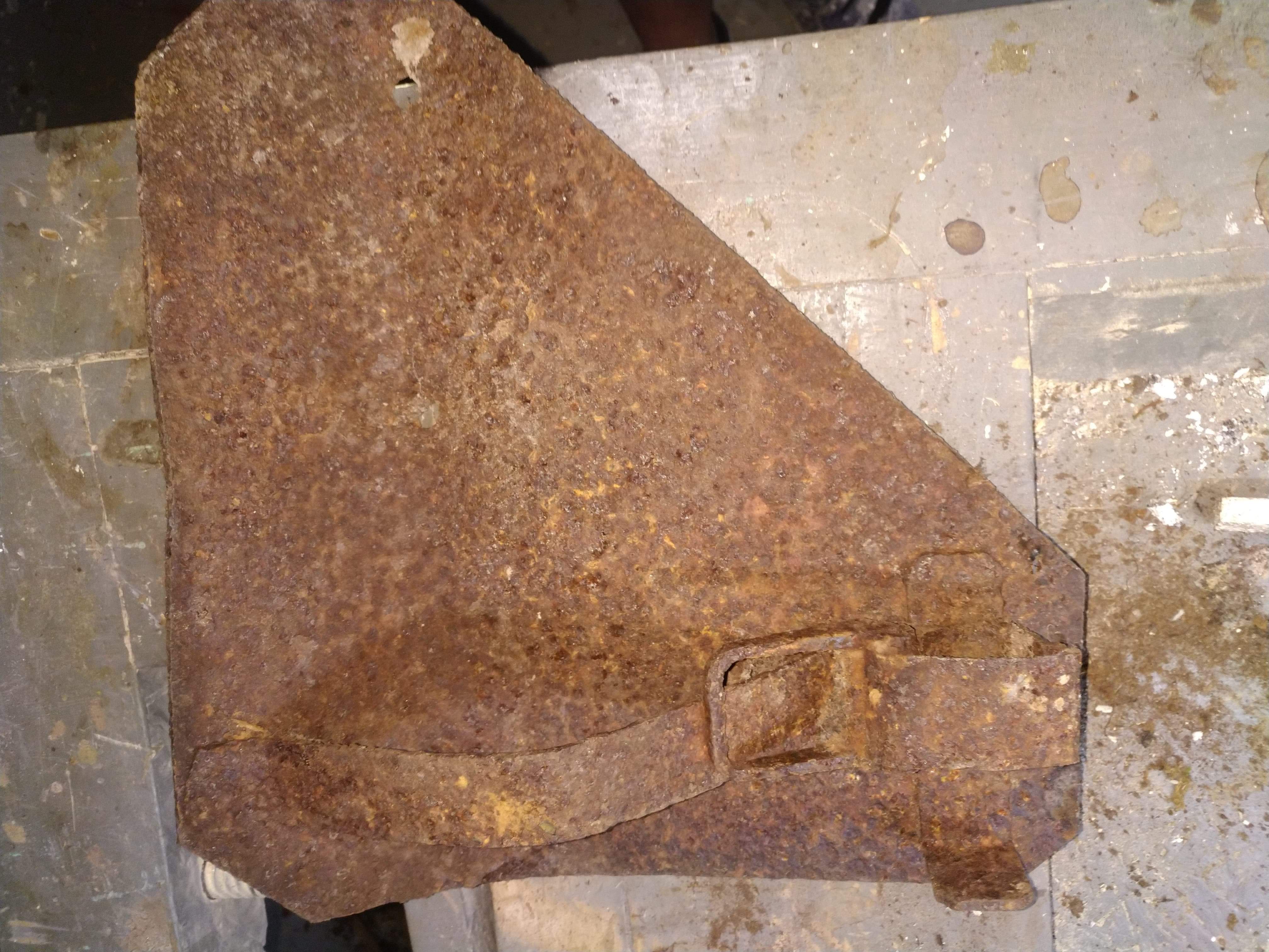 Kas sealt punkrist muid leide veel tuli, eriti just pildil oleva asja lähedalt? See võiks tuvastamisel edasi aidata. Lisaks poleks paha see vidinas elektrolüüsist läbi lasta. Puhtana saaks juba paremini aru, on ta üks detail või millegi küljest ära murdunud või kas sel augul on juhtumisi ka keere sees, või ehk isegi mingi markeering kuskil või veel midagi, mis hetkel välja ei paista. Või äkki hoopis oblikhappega puhastamist katsetada. Ilmub alt ehk mõni originaalvärvilaiguke nähtavale, sellegi järgi saaks midagi võibolla oletada.