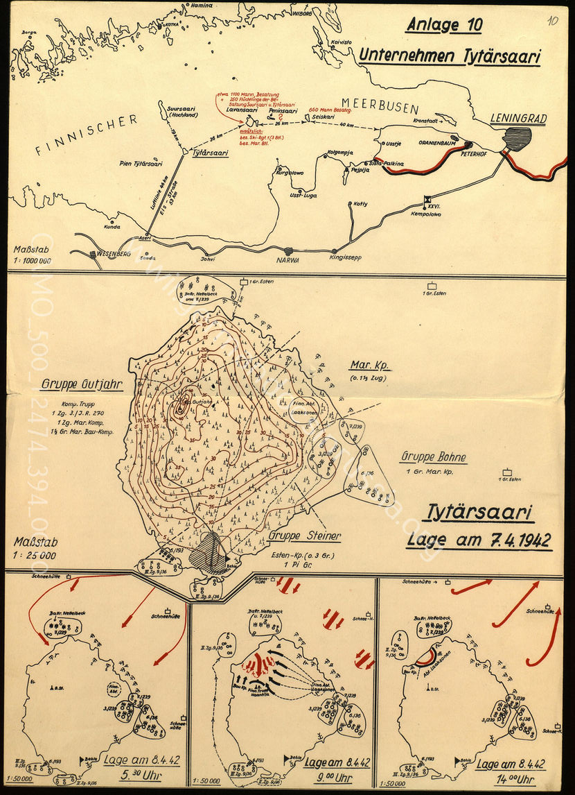 Am 1.4. stellte ein finnischer Spähtrupp Iso Tytärsaari feindfrei fest, worauf anschließend die Insel von 1 finnischen verst. Komp. besetzt wurde. Diese Komp. wurde am 2.4. nachmittags von etwa 300 Russen angegriffen und kam zeitweise in eine so schwierige Lage, daß vom Finnischen Hauptquartier am 3.4., 02,45 Uhr durch Fernschreiben deutsche Hilfe erbeten wurde.