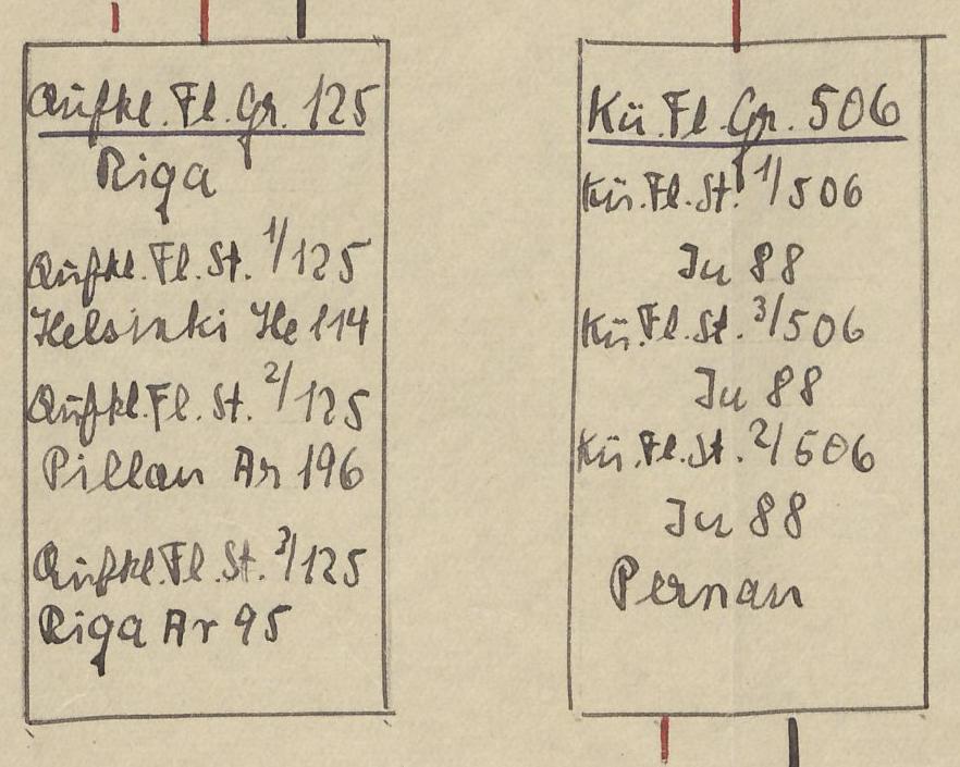 Allüksuste asukohad. Kuupäevad failinimes. Esimene kuupäev on arvatavasti trükiviga (3./125 baseerumine Liepajas enne sõja algust), võib-olla on õige kuupäev 29. juuni. Teisel pildil on number 126 viga