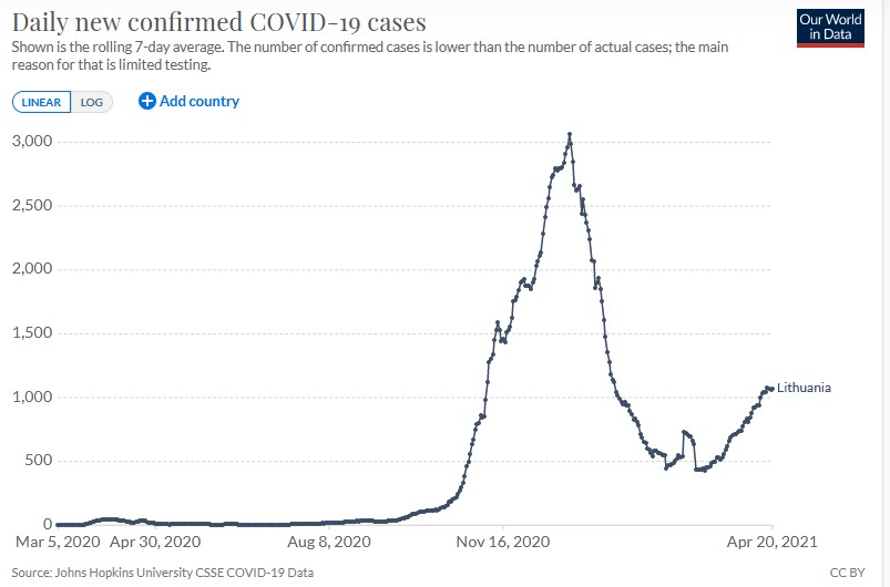 John Hopkinsi Ülikooli andmetel ei ole päevas tuvastatud uute juhtumite (mitte nakatunute!) 7 päeva keskmine sel aastal eriti alla 400 olnud (üksikute päevade võrdlemisel ei ole suuremat mõtet). Praegune tõus on samas suurusjärgus testide arvu tõusuga nagu Lätiski. https://ourworldindata.org/coronavirus/ ... rmed-cases https://ourworldindata.org/coronavirus/ ... d-each-daygooligan kirjutas:Leedu läks kinni novembris. Avanemised planeeritud suuremas osas mai algusesse. Numbrid lähevad üles.
