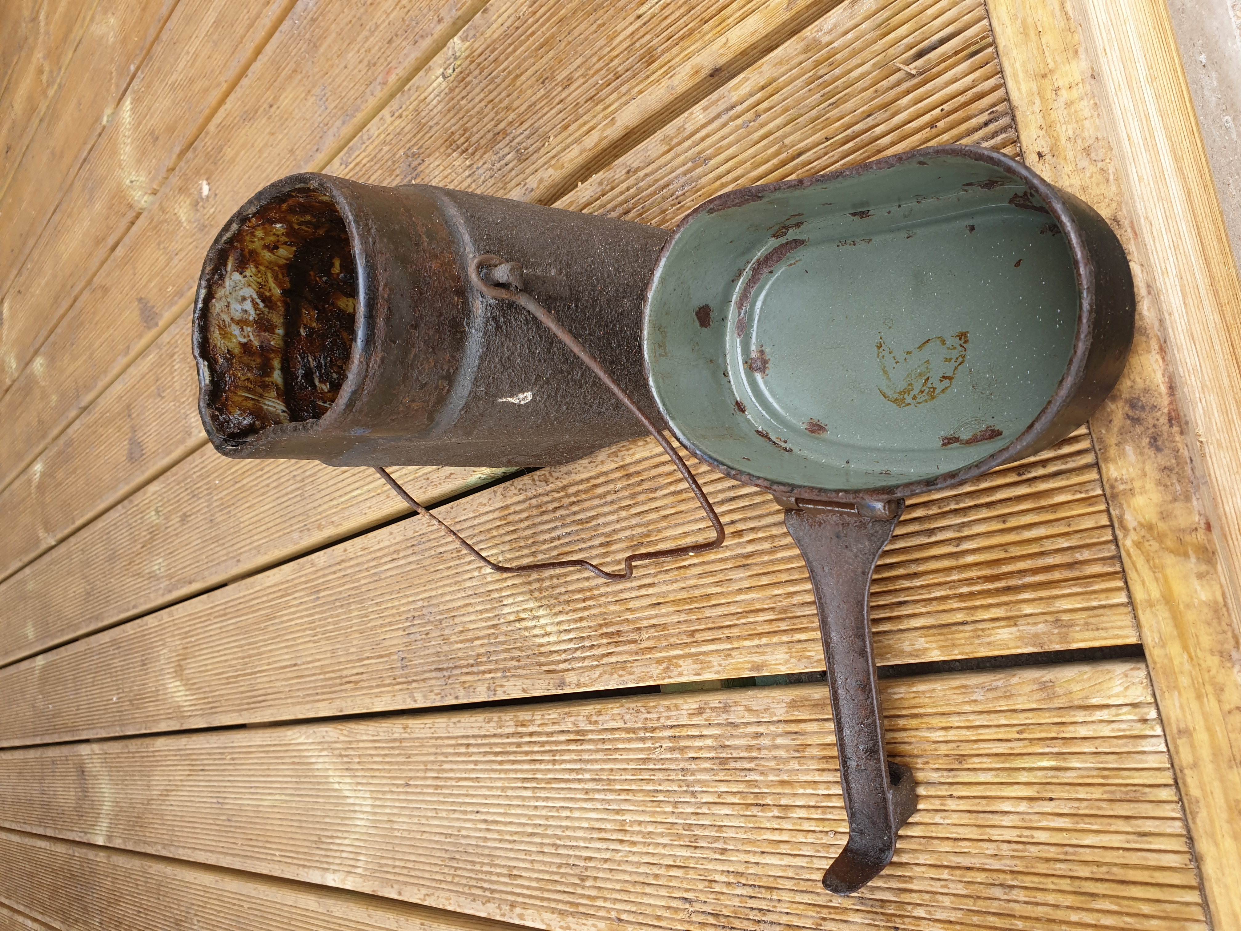 Katelok üleni rauast ja emailitud. Kas võib olla m1910 mudeliga või on hilis sõja aegne. Ei ole veel õiget kohta üles leidnud kust numbreid otsida. Sees on veel hea kiht tavotti mis oleks vaja jätte saada.. kas kuumapuhuriga oleks mõistlik proovida?