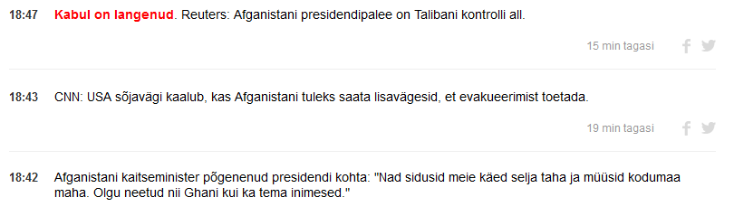 Talibani kõneisik Suhail Shaheen annab praegu otseetris telefoniintervjuud telekanalile BBC World. Küsimuse peale, kas Afganistanis kehtestatakse taas šariaadikord, vastas Shaheel: "Loomulikult tahame me islamivalitsust."