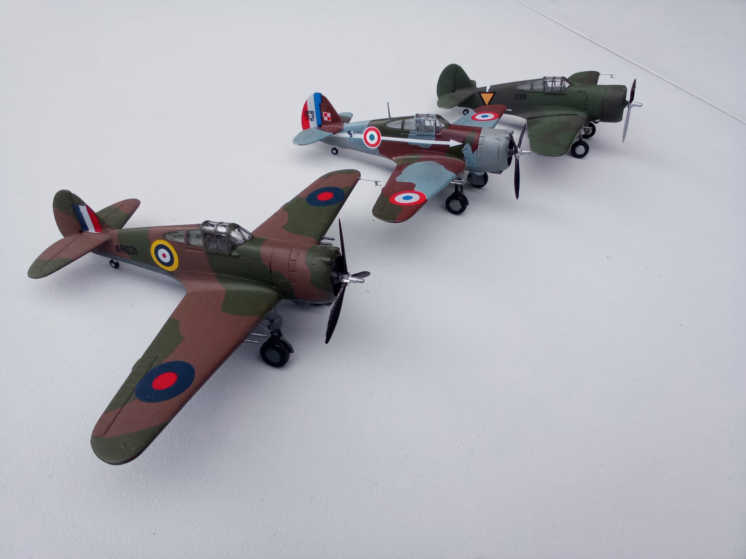 Aga riputan siis mõned viimase poole aasta saavutused üles. Esmalt grupipilt Curtiss Hawk´idest. 1/72 tootja AZ Models. Inglise, Hollandi ja Prantsuse versioonis. (Mul on veel Hiina, Austraalia, USA ja Saksa trofee variant puudu. Nojah- Soome enne 1945 aastat samuti :)).