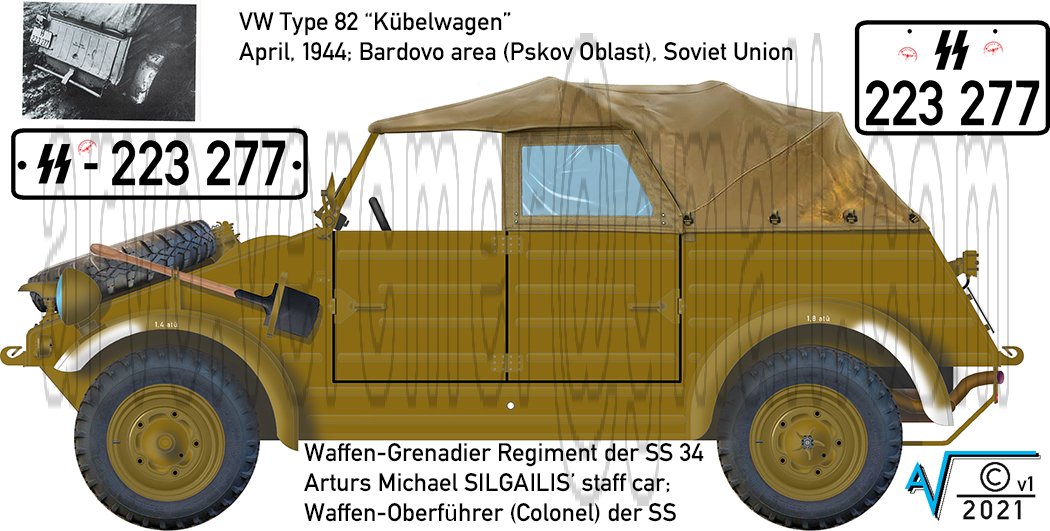 ... sõidukis viibinud kolm sõdurit on eestlased – praegu pole aga teada, kas foto on tehtud 1942/1943 (viidet, et mehed võisid teenida ühes Saksa-Eesti "Ost-Bataljon'is") või 1944 (vihjab võimalikule teenistusele 20. Eesti Waffen-SS-diviisis). Kübelwagen'il pole märgatavaid märgistusi näha ... Aitäh Toomas Türk ja Petter Kjellander ...