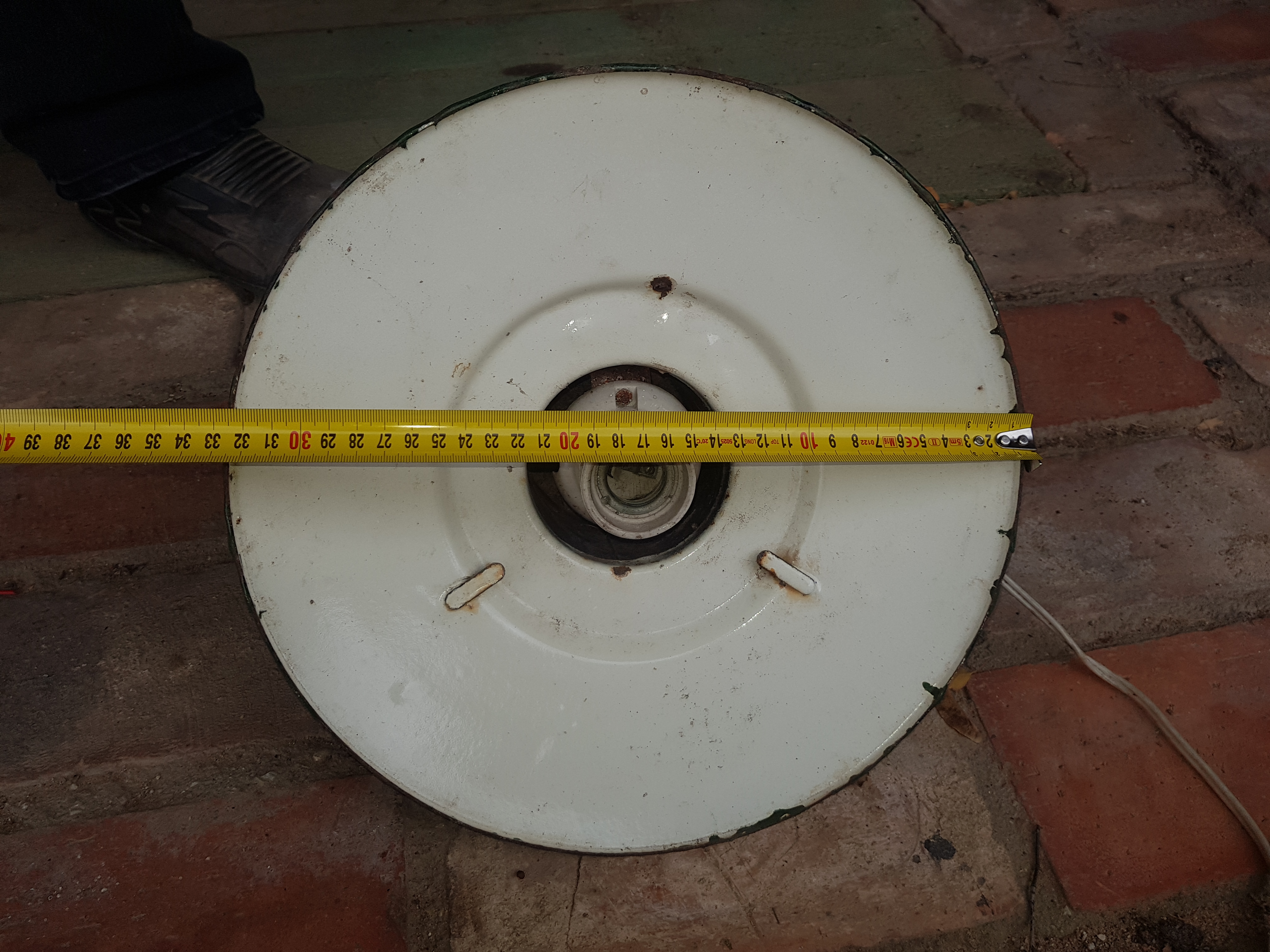 Väike ja suur välivalgusti emailitud kuppel kasarmu ette.