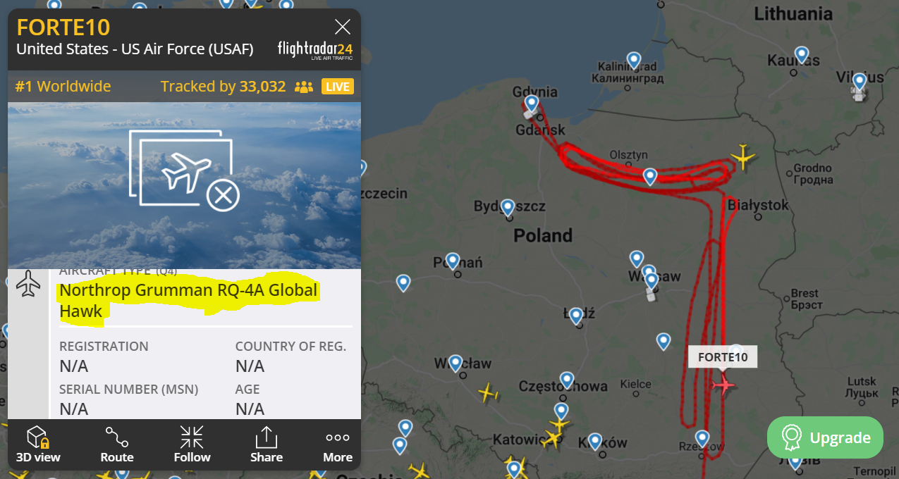 Samuti lendas eile Poola õhuruumis USA luuredroon.Kilo Tango kirjutas:F-35-d on lennanud Poola kohal/