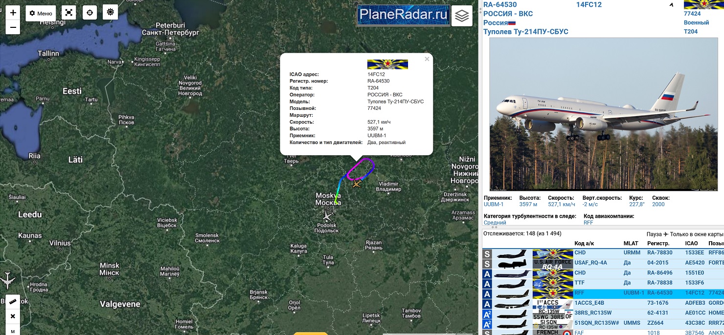 Selgituseks: Tu-214PU-SBUS is an airborne control post (PU, Punkt Upravleniya) equipped with the SBUS-214 (Spetsyalnyi Bortovoy Uzel Svyazi) onboard communication centre.