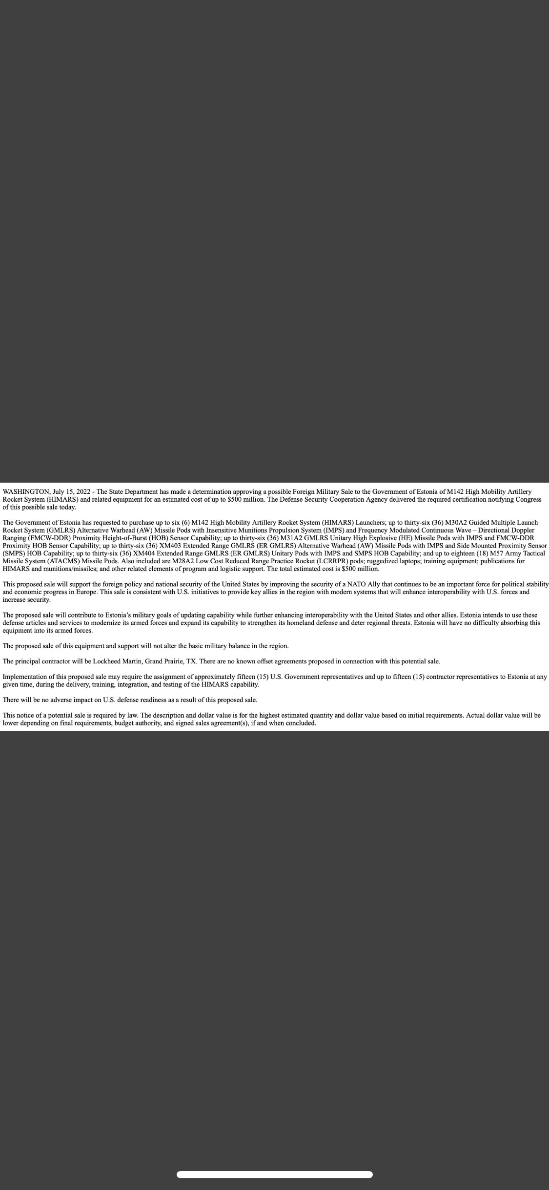 Viide esialgsele avaldusele ka: https://www.dsca.mil/press-media/major- ... tem-himars