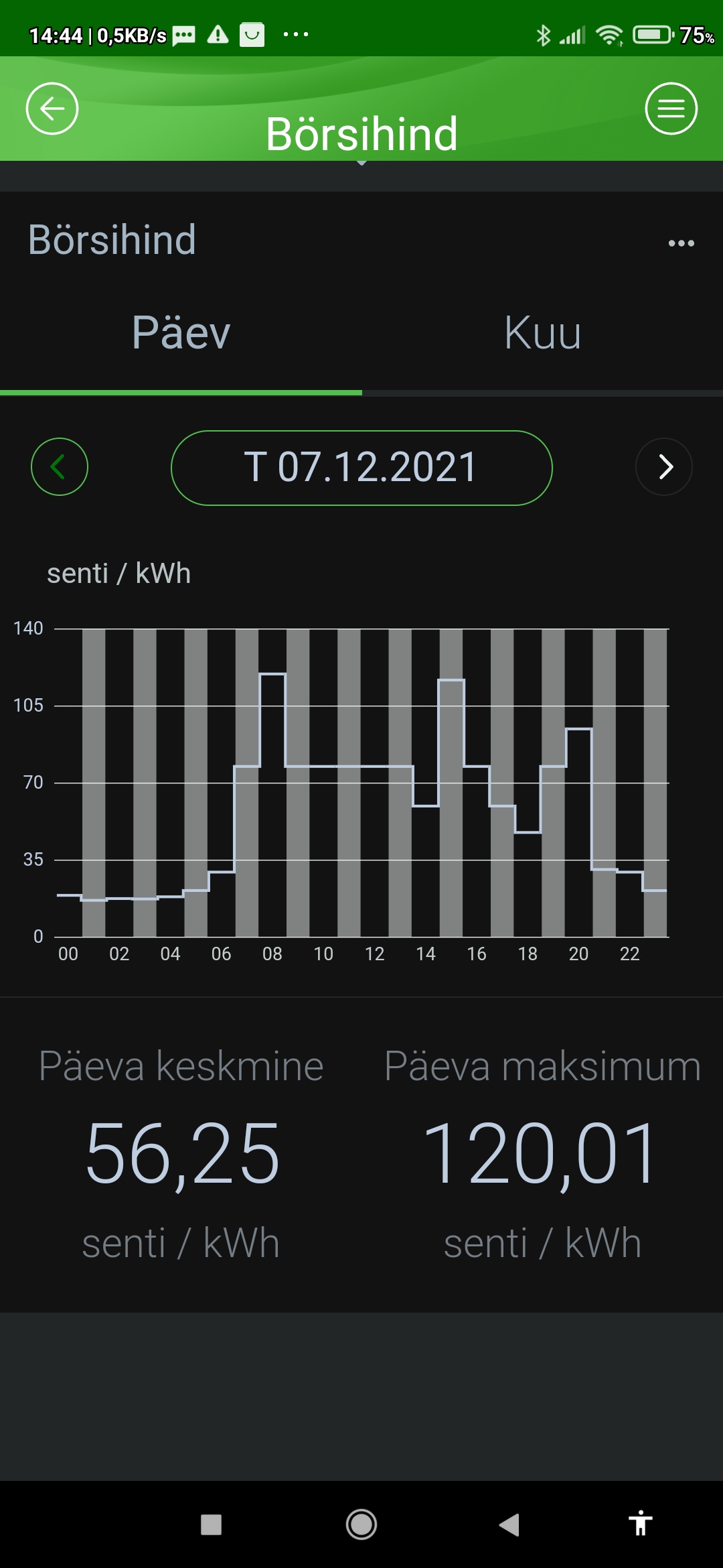 Lisan juurde enda tehtud kuvatõmmise EE lehelt, kus on näidatud börsi kWh tunnihind koos käibemaksuga aga ei sisalda lisanduvaid makse (taastuvenergiatasu ega võrgutasu).