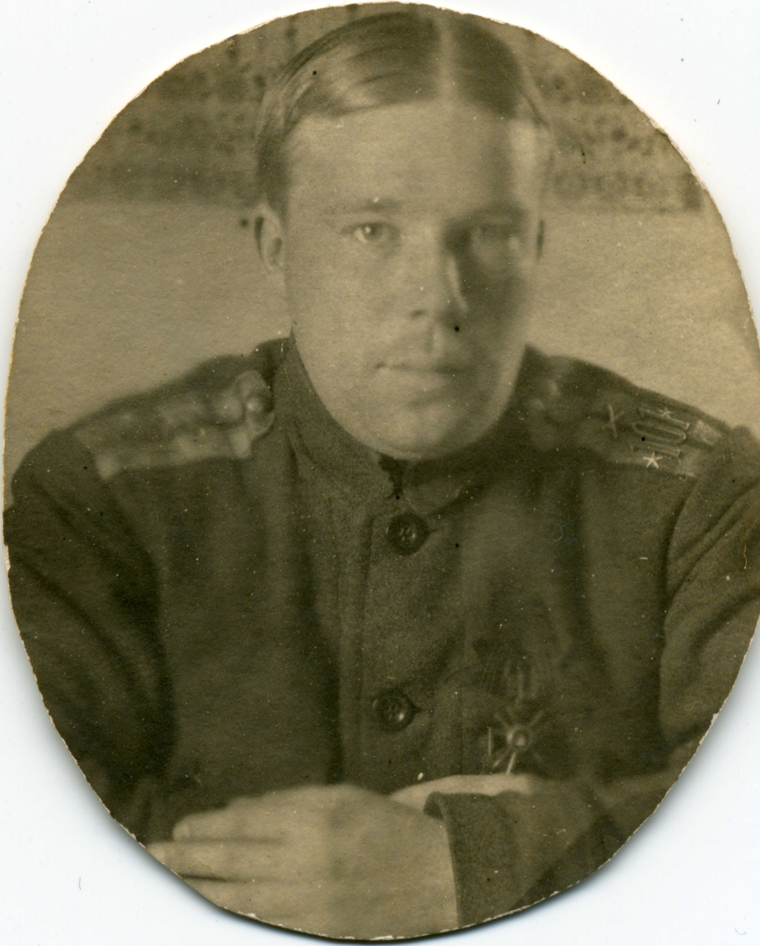 Tänane pilt vähemalt pühenduse järgi 1924. aastast (23 VII või 23 XII). Kui ma neist kraenurkadest õigesti aru saan, siis need ju kapteni omad? Ehk siis pilt on enne 24.02.1924 majoriks ülendamist? Vorm jällegi tundub olevat see uus ja värske 1924. aasta oma. Rinnas vist endiselt Vladimiri IV järk. Ausalt öeldes küllalt segane värk nende kraenurkade, õlakute ja vormide dešifreerimisega, kui miski ülaltoodust tundub foorumi lugejatele teistmoodi, palun parandage.